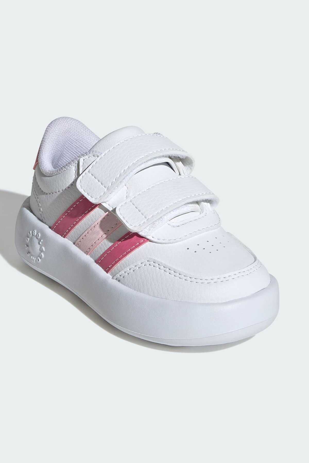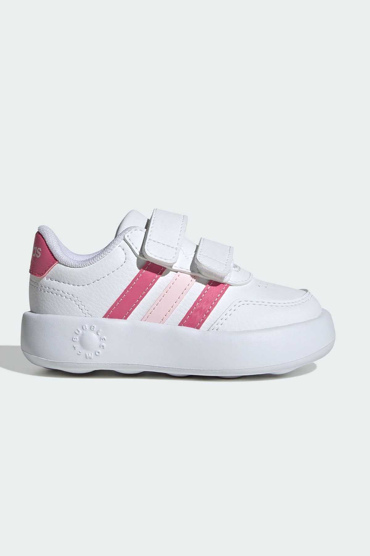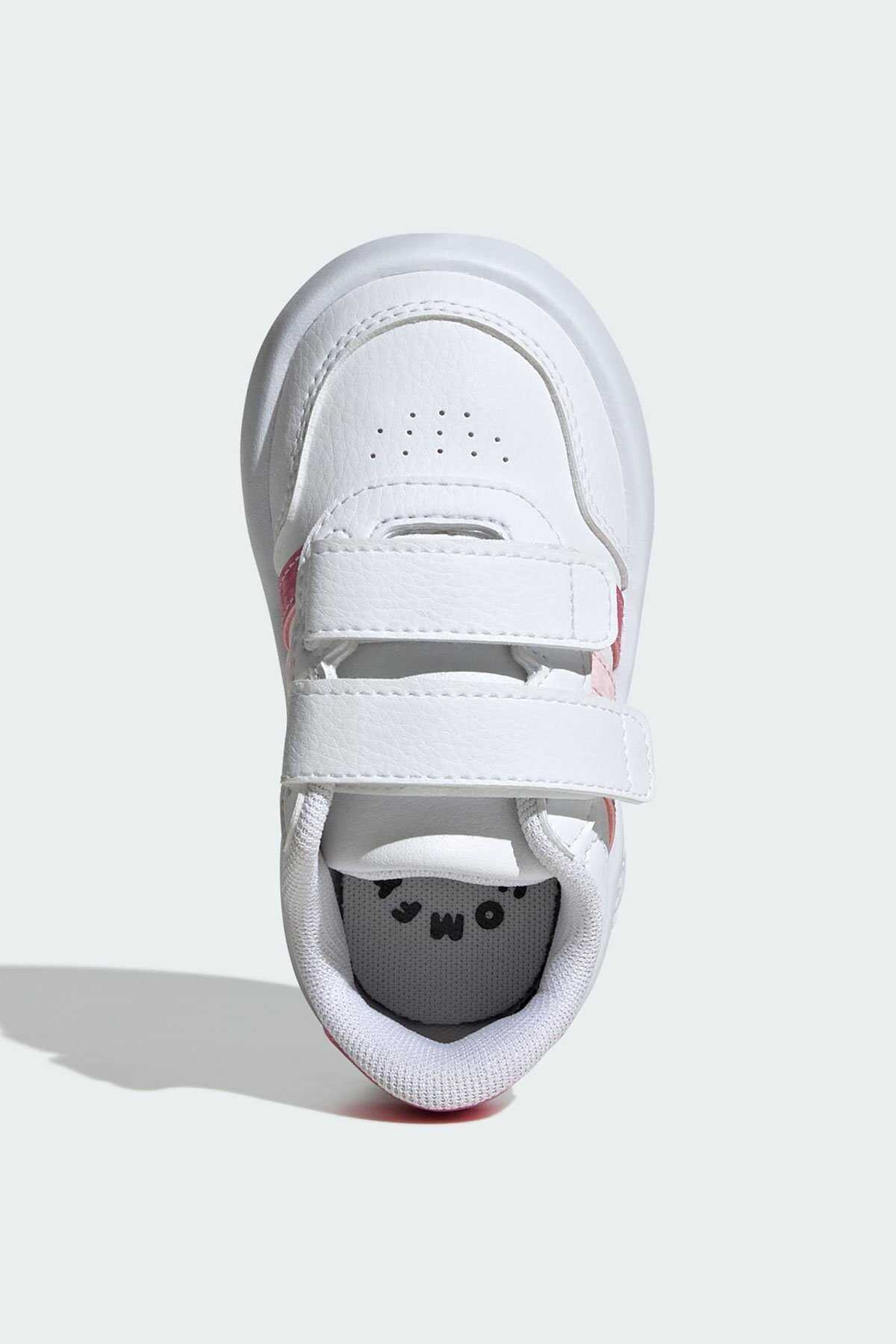 En küçük ayaklara tam uyan günlük kullanım için ideal boyutlarda.-Adidasın bu çok yönlü bebek ayakkabıları kortlardan ilham alan bir tasarıma sahip ve ayakları içine soktuğunuzda sıkıca tutan cırt cırtlı kayışlarla donatılmıştır. -Yumuşak kabarcıklı EVA orta taban sentetik üst kısım ve dış taban küçük çocukların rahatlığını sağlamak için tasarlanmıştır.-Geniş kalıp-Cırt cırtlı kayış kapatma-Sentetik üst kısım-Kumaş astar-Sentetik dış taban-Bu ürün sentetik deri içerir-Renk: Bulut Beyazı Pembe Füzyon Şeffaf Pembe-Ürün kodu: JS3676-Menşei: Endonezya