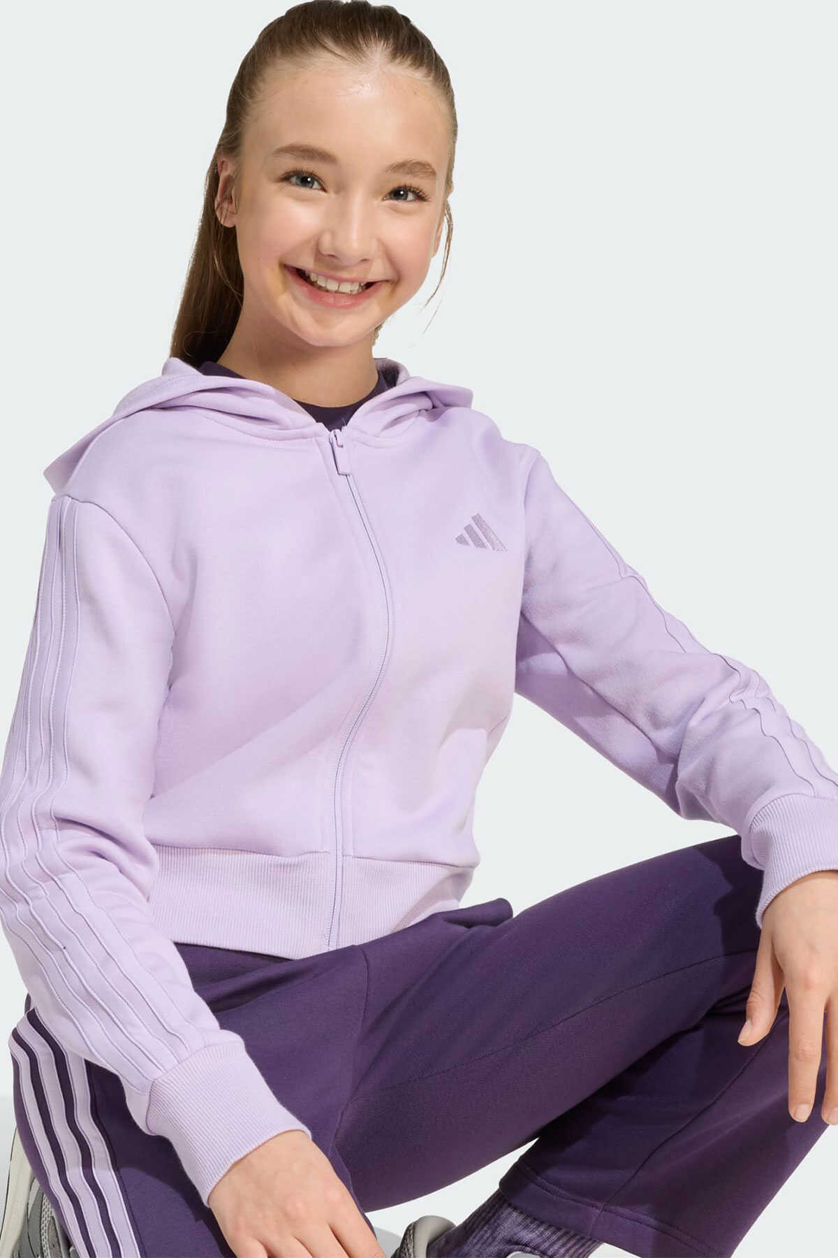 Çocuklara özel bu adidas eşofman takımı gün içinde her duruma uyum sağlayabilir. -Yumuşak polar yapısı her türlü aktivitede rahatlık ve konfor sunarken yanlardaki ikonik 3 Bant detayları sportif şık bir görünüm katar. -Montun ince kesimi açık paça eşofman altıyla mükemmel şekilde eşleşerek modern ve günlük bir kombin sunar. -Bu eşofman takımı günlük işlerden arkadaşlarla keyifli buluşmalara kadar her durumda ihtiyaçlarını karşılar.-Normal kesim-Fermuarlı tasarım-%95 pamuklu %5 elastan-Açık paça-Ürün rengi: Powder Plum Aurora Plum-Ürün kodu: JN2439-Menşei: Kamboçya
