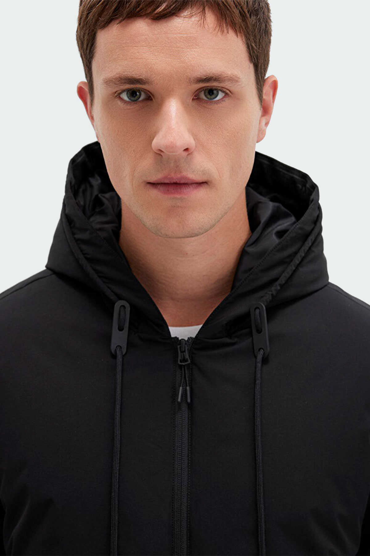 Mavinin dış giyim koleksiyonundan Kapüşonlu Siyah Şişme Mont.- İki adet fermuarlı yan cep iple ayarlanabilir sabit kapüşon bir adet iç cep.-Kumaş Bilgileri-Kumaş: %100 Elastomultiester-Astar 1: %100 Polyester-Astar 2: %100 Polyester-Dolgu: %100 Polyester-Menşei: Myanmar-