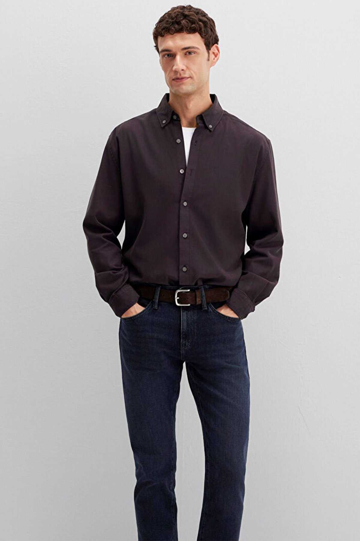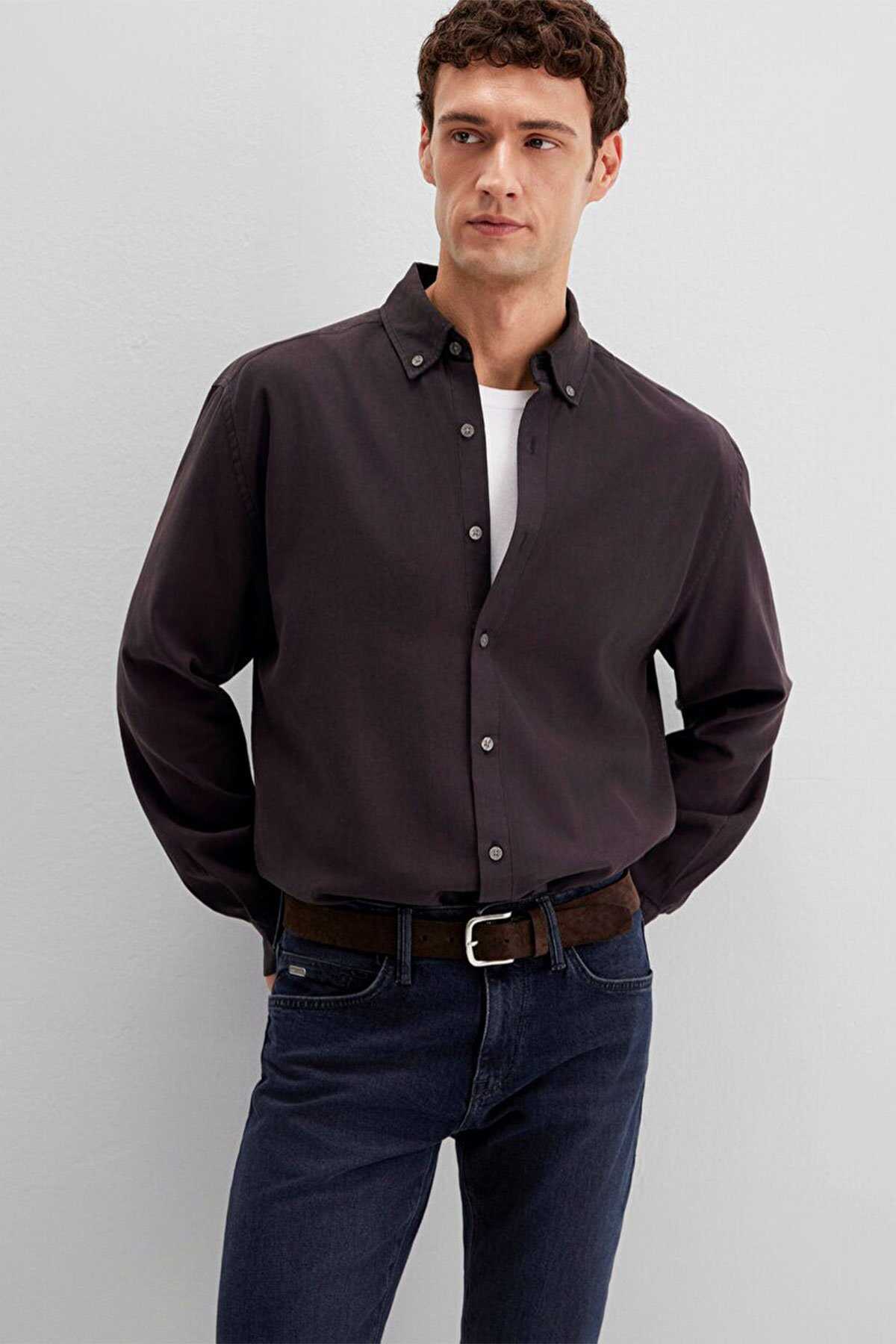 Mavi nin erkek koleksiyonundan Kahverengi Gömlek. - Loose Fit Bol Rahat Kesim - Ürün Kodu: 0211751-91404 - Kumaş Bilgileri - %56 Lyocell (Tencel TM) - %44 Pamuk - Manken Ölçüleri - Jean: Bel: 31 Boy: 32 Üst: L - Boy: 189.5 cm Bel: 80 cm Göğüs: 98 cm Kalça: 98 cm - Menşei: Türkiye