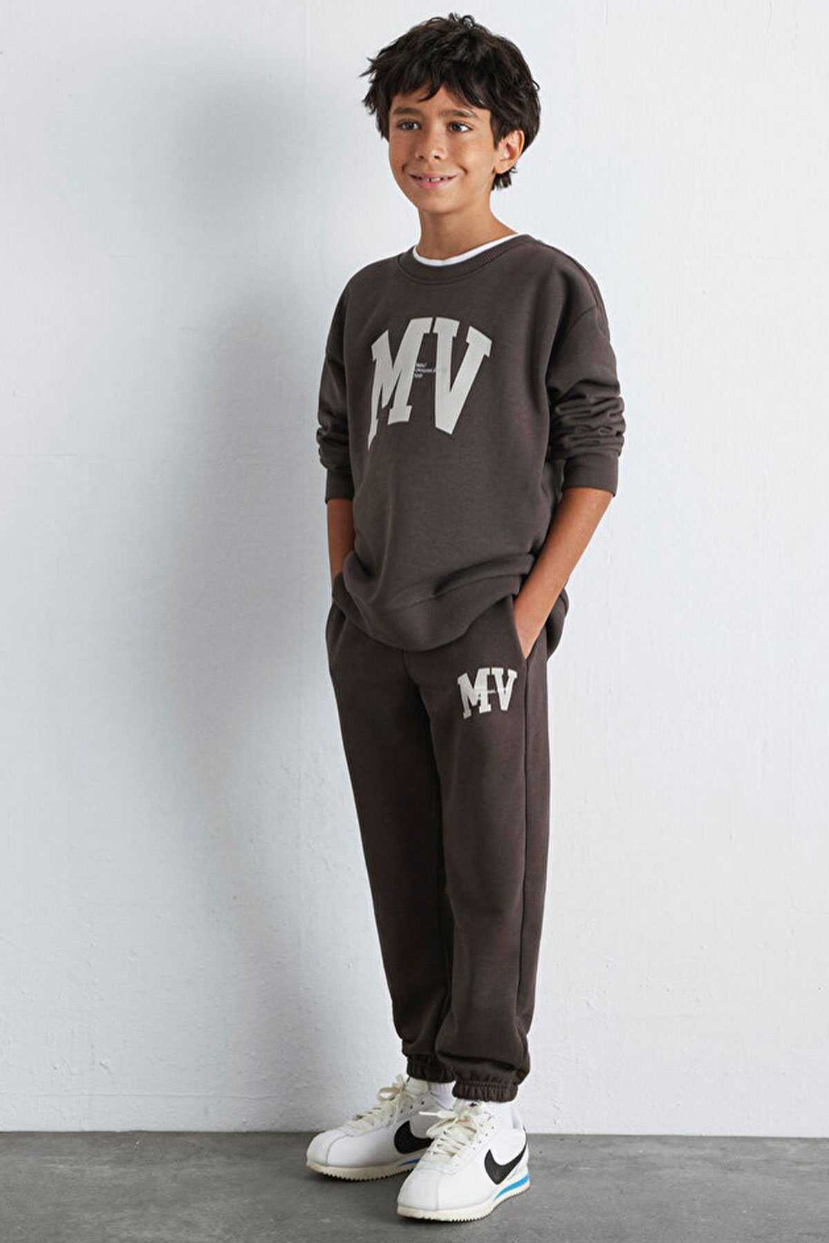 Mavinin Erkek Çocuk koleksiyonundan MV Baskılı Kahverengi Eşofman Altı. -Şardonsuz iki adet yan cep iple ayarlanabilir bel lastik paça.-Ürün Kodu: 6010010-71593-Kumaş Bilgileri-%69 Pamuk-%31 Polyester-Menşei: Türkiye-