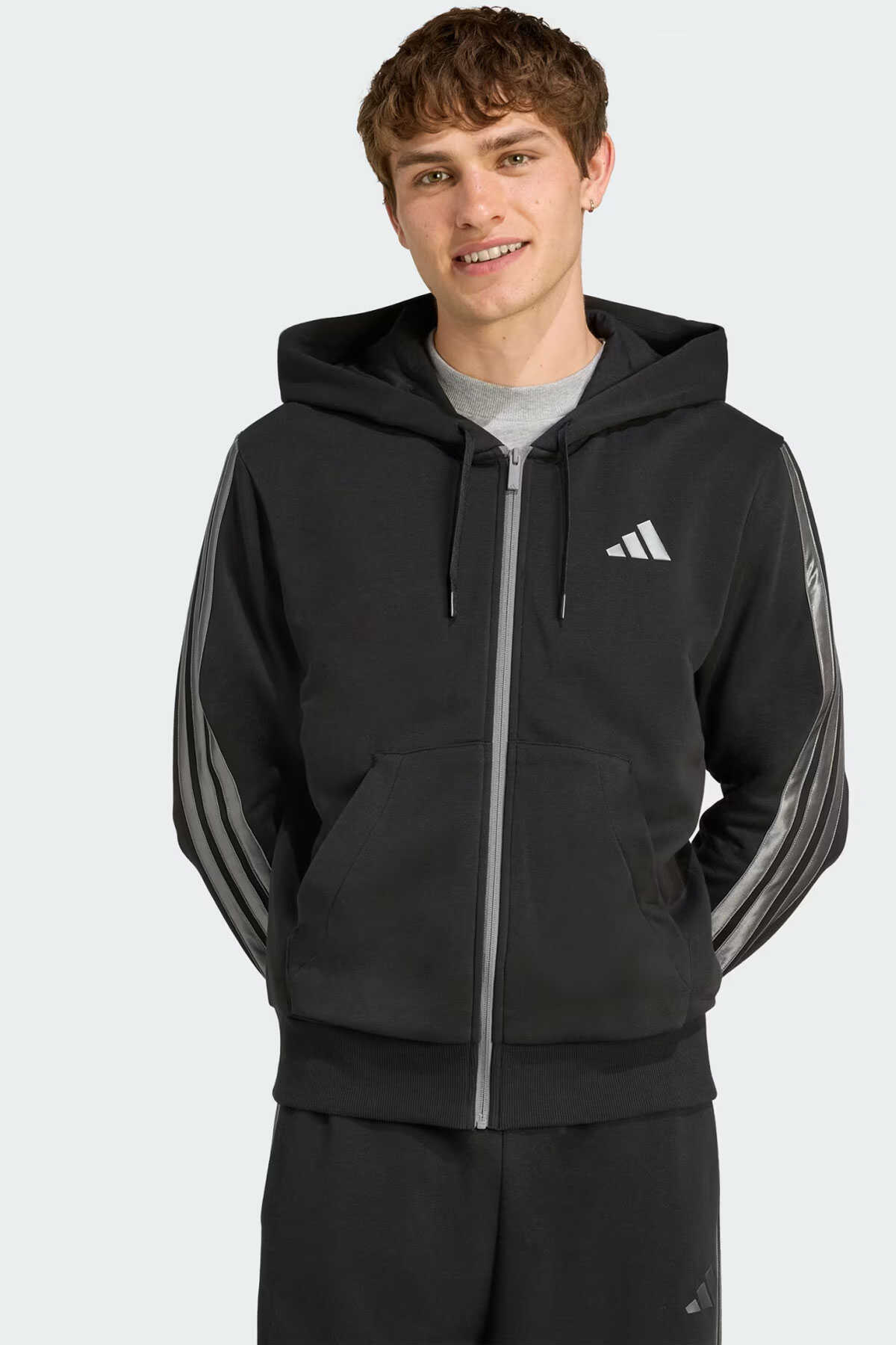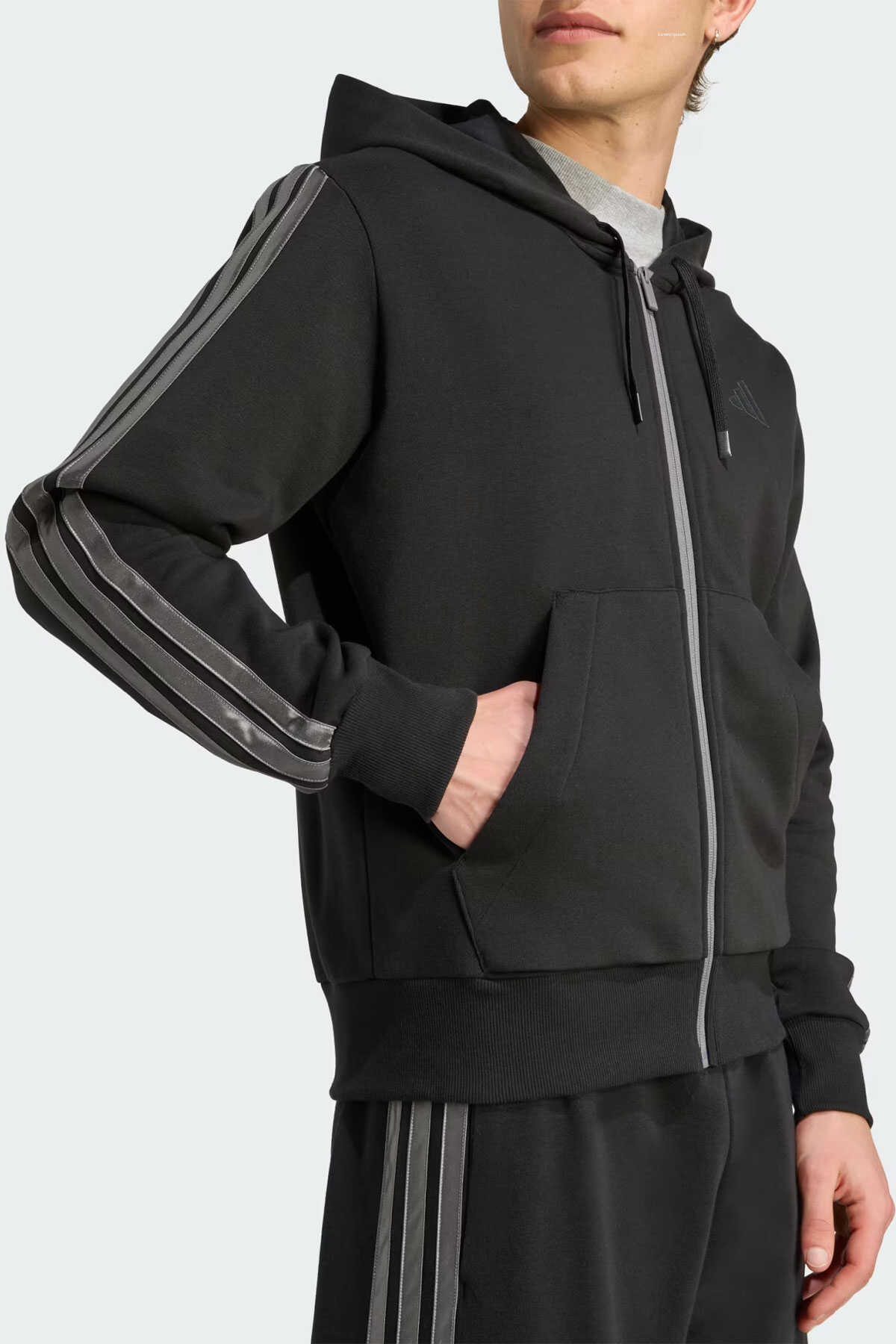 Bu adidas kapüşonlu üstü giydiğin anda rahat stili hissedeceksin. -Yumuşak polar yapısı seni konforla sararken 3 bant sportif bir görünüm sunar ve tam boy fermuarlı ön kısım çok yönlü kullanım sağlar. -Hem dışarıda hem de evde bu kapüşonlu üstle rahat tavrını tam olarak yansıt.-Normal kesim-Fermuarlı tasarım-%70 pamuklu %30 polyester (geri dönüştürülmüş)-Kanguru cepler-Ayarlanabilir bağcıklı kapüşon-Ürün rengi: Black-Ürün kodu: JM1695-Menşei: Vietnam