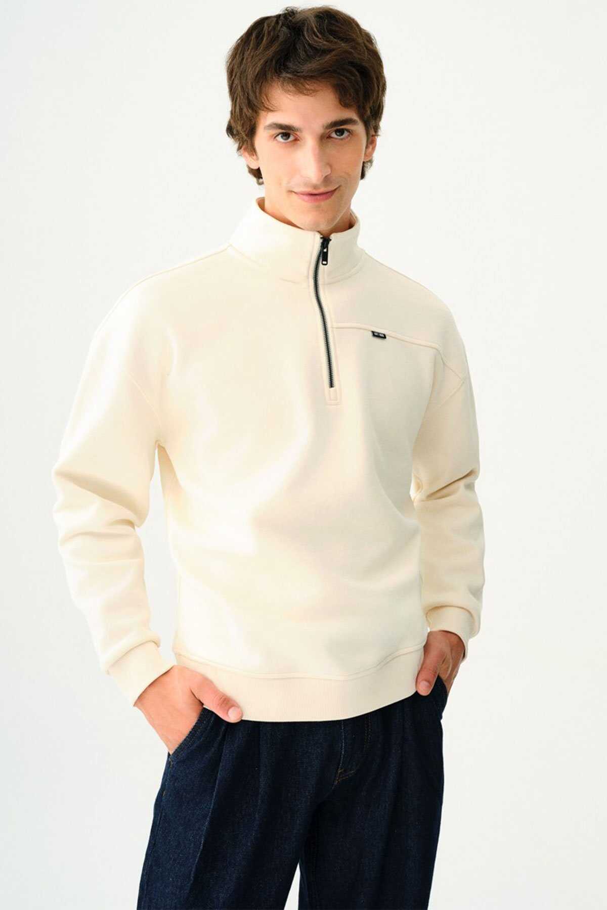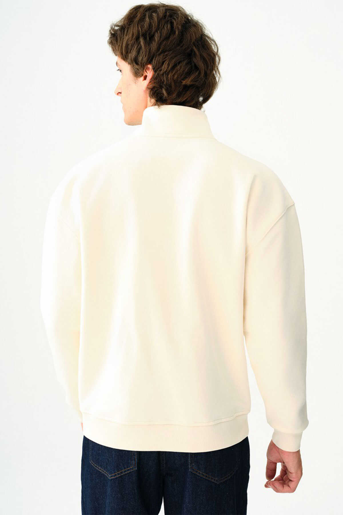ÜRÜN KODU: LF2037226_Q1.V1_ECR-KUMAŞ ÖZELLİK: %65 Pamuk %35 Poliester-Cinsiyet: Erkek-Fit: Oversize-Kol Tipi: Uzun Kol-Tema: Loft Tımeless-Ekru rengin sadeliğinde gizli gücü yakala!-Yüksek yakasıyla boyun çizgini vurgulayan uzun kollarıyla rahatlığın sınırlarını zorlayan bir sweatshirt düşle.-Oversize fiti vücudunu saran yumuşaklığıyla her harekete eşlik ediyor.-Dayanıklı ve nefes alabilen kumaşı gün boyu konfor sunuyor.-Düz renk desensiz tasarımıyla günlük spor stilini domine et.-Siyah pantolonun sert çizgilerini Ekru sweatshirtün sakin şıklığını dengele. -Bordo bir şapka ile tamamlayarak stili zirveye taşı.-Enerjini serbest bırak hemen sipariş ver!-Menşei: Türkiye-