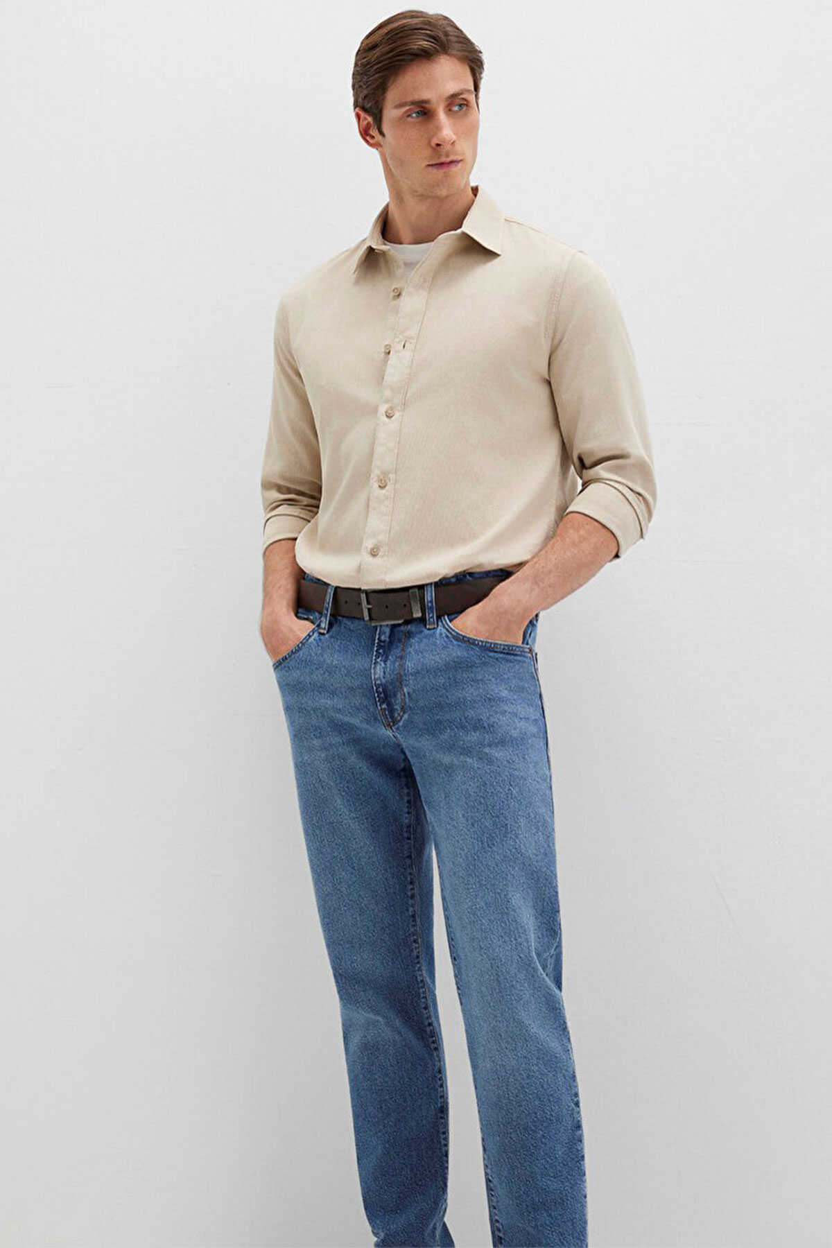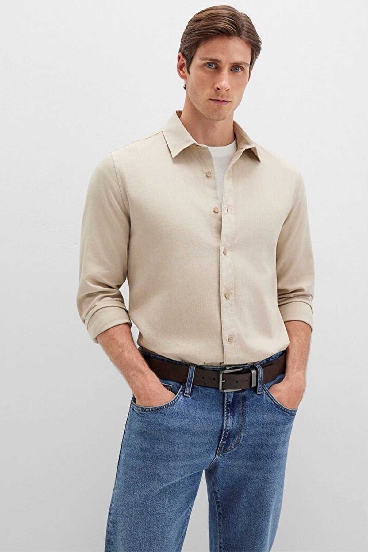 Mavi nin erkek koleksiyonundan Bej Gömlek. - Regular Fit Normal Kesim - Ürün Kodu: 0211641-70039 - Kumaş Bilgileri - %88 Pamuk - %12 Keten - Manken Ölçüleri - Jean: Bel: 31 Boy: 31 Üst: L - Boy: 187 cm Bel: 80 cm Göğüs: 99 cm Kalça: 94 cm - Menşei: Türkiye