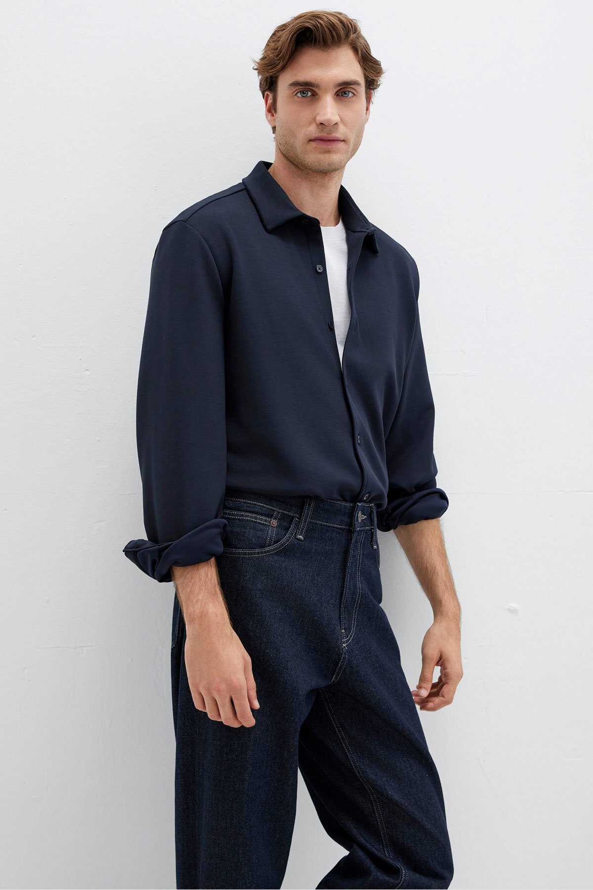 %75 Polyester %16 Viskon %9 Elastan - Kent yakalı ve düğmeli gömlek - Yüksek kaliteli viskon karışımı - Düz renk esnek - Model 189 cm boyunda bel: 78 cm göğüs: 94 cm kalça: 88 cm ve L beden giyiyor. - Normal kesim uzun kollu - Ürün Kodu: 0211752-70490 - Menşei: Türkiye