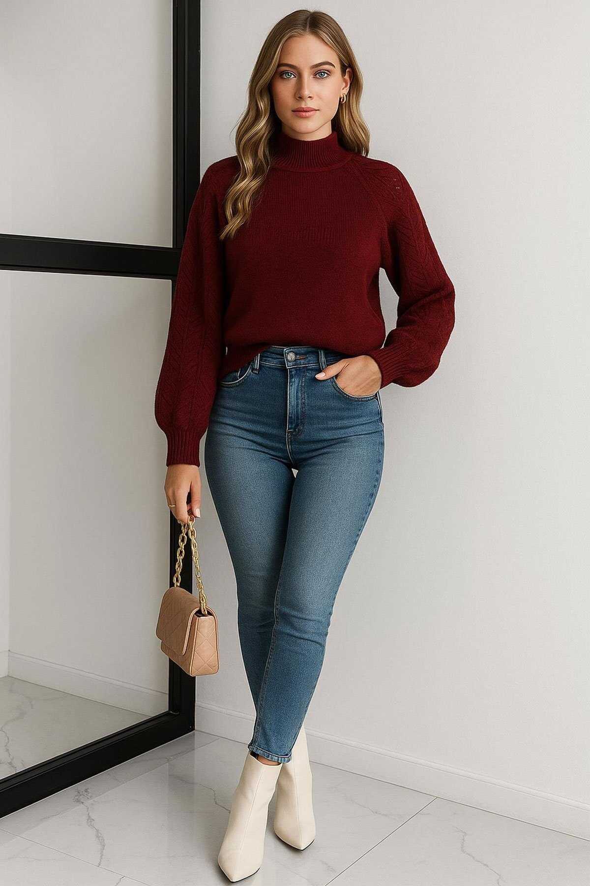Kadın Ajurlu Kazak 25K0197K1 Bordo