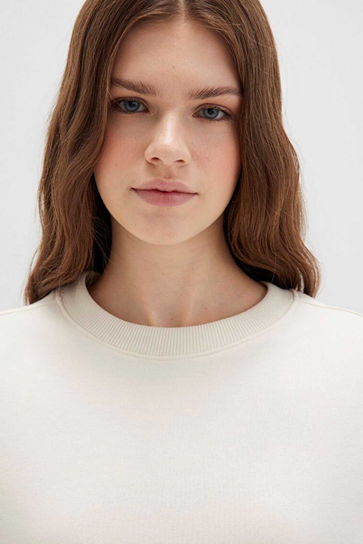 Mavi nin kadın koleksiyonundan Bisiklet Yaka Ekru Sweatshirt. - Loose Fit Bol Rahat Kesim - Ürün Kodu: 1S10387-70049 - Manken Ölçüleri - Alt: Bel: S Üst: S - Boy: 177 cm Bel: 61 cm Göğüs: 85 cm Kalça: 90 cm - Menşei: Türkiye