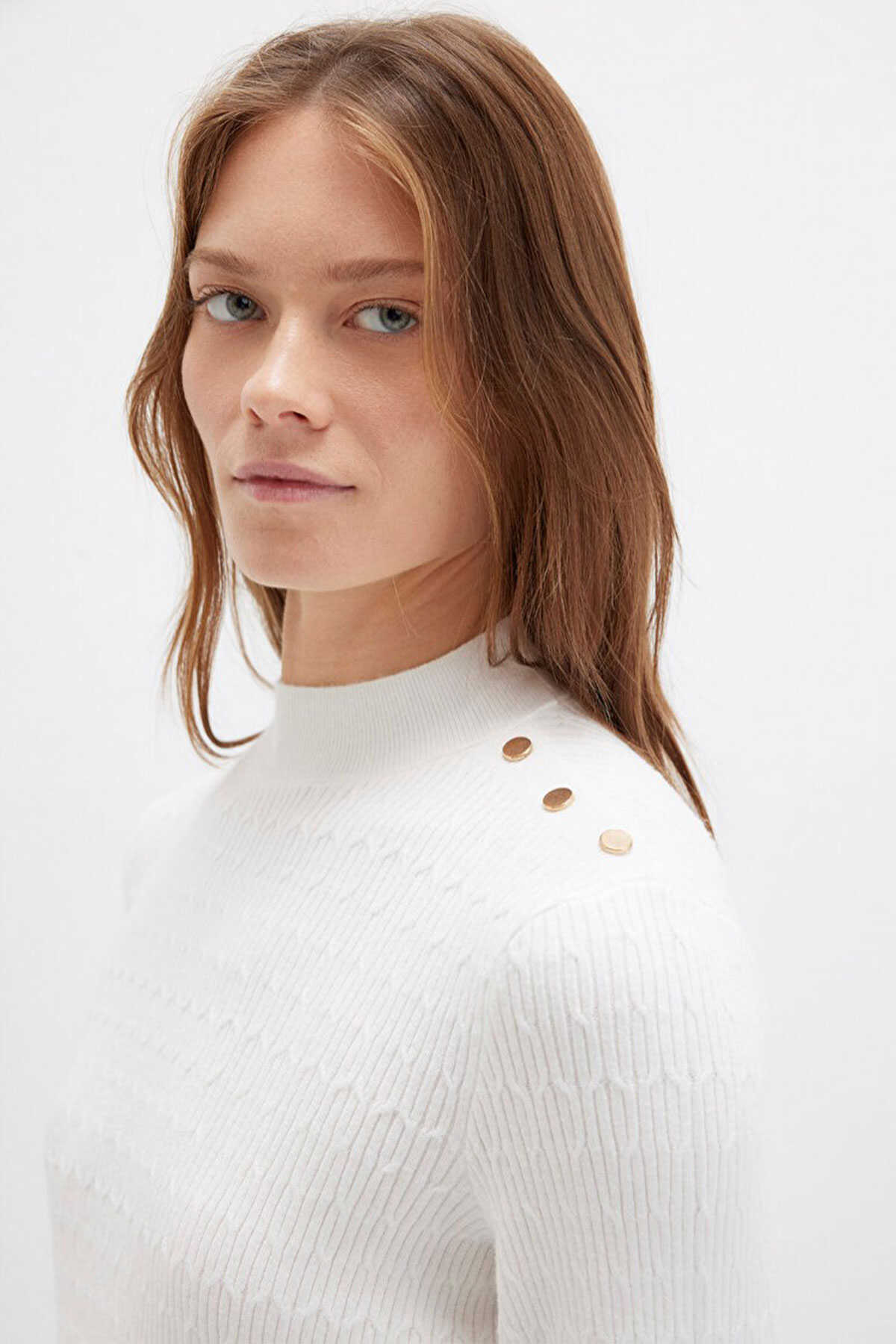 Mavi nin kadın koleksiyonundan Omuz Detaylı Ekru Kazak. - Slim Fit Dar Kesim - Ürün Kodu: 1710798-70057 - Kumaş Bilgileri - %50 Viskoz - %30 Polyester - %20 Polyamit - Manken Ölçüleri - Jean: Bel: 26 Boy: 32 Üst: S - Boy: 177 cm Bel: 65 cm Göğüs: 83 cm Kalça: 92 cm - Menşei: Türkiye