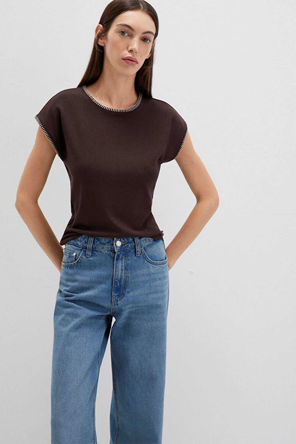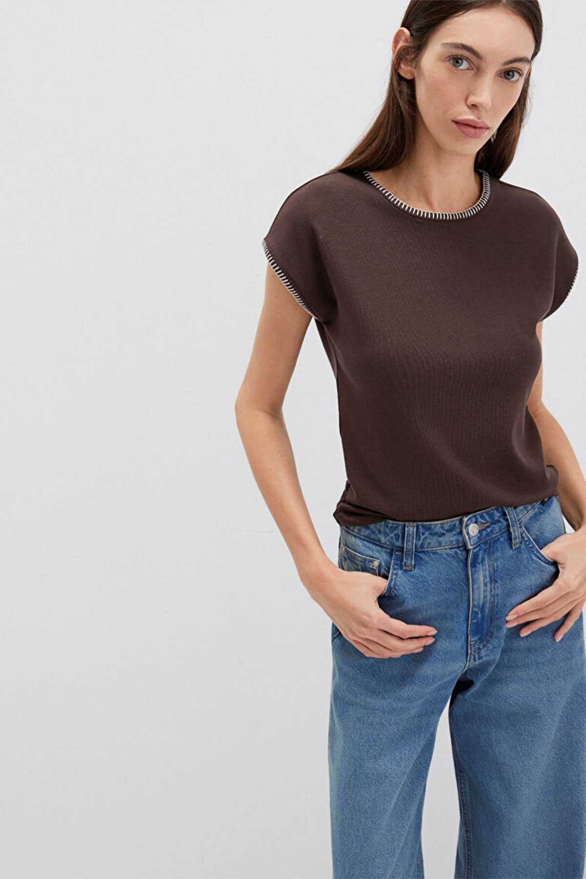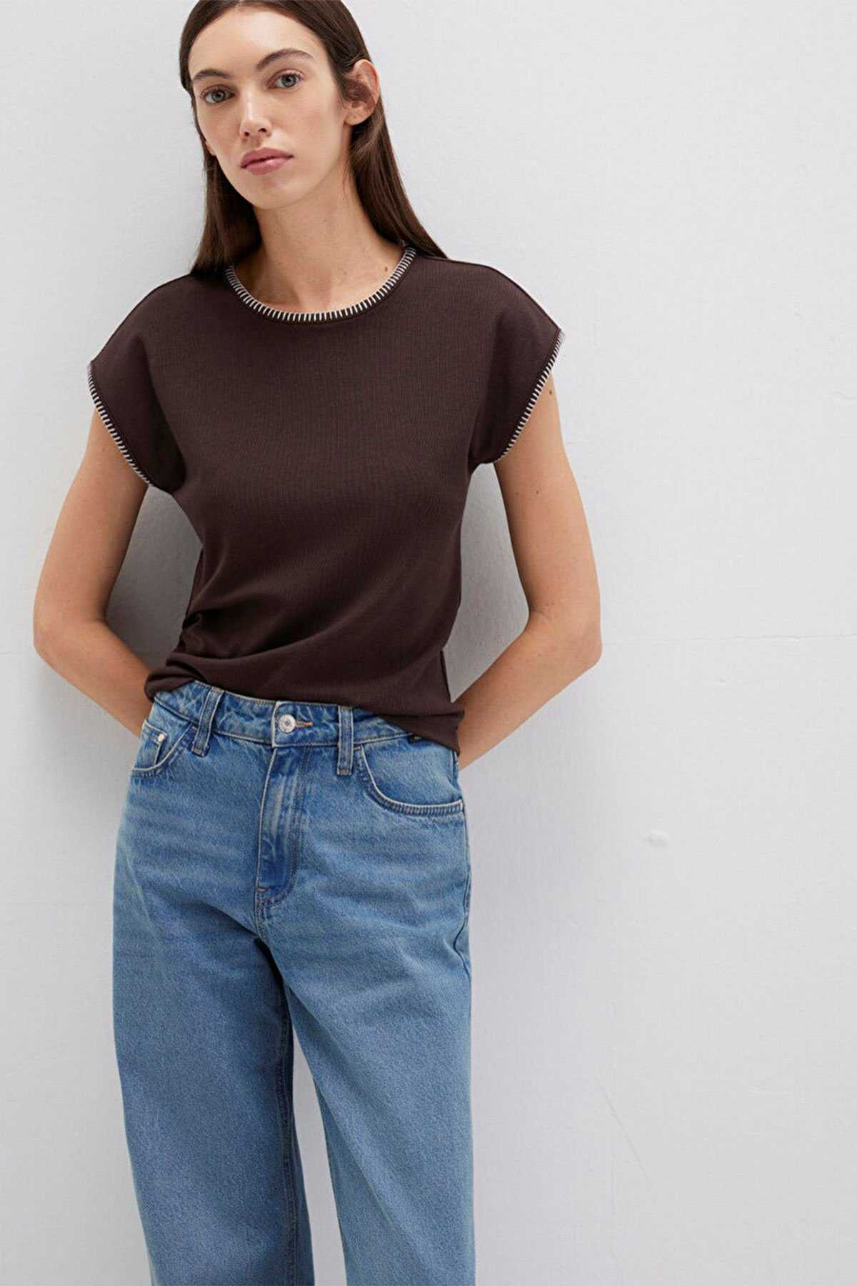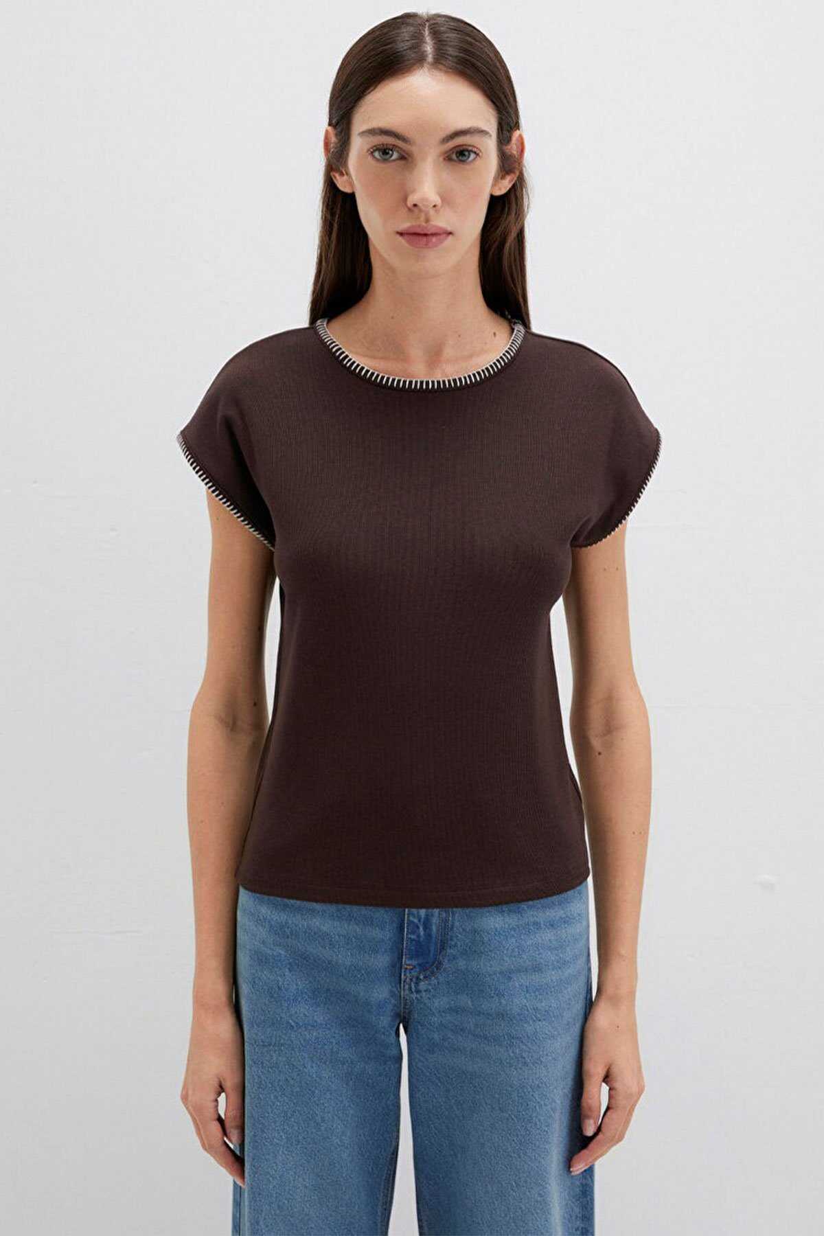 Mavi nin kadın koleksiyonundan Şerit Detaylı Kahverengi Tişört.-Ürün Kodu: 1613696-70236-Kumaş Bilgileri-%71 Viskoz-%25 Polyester-%4 Elastan-Menşei: TÜRKİYE-