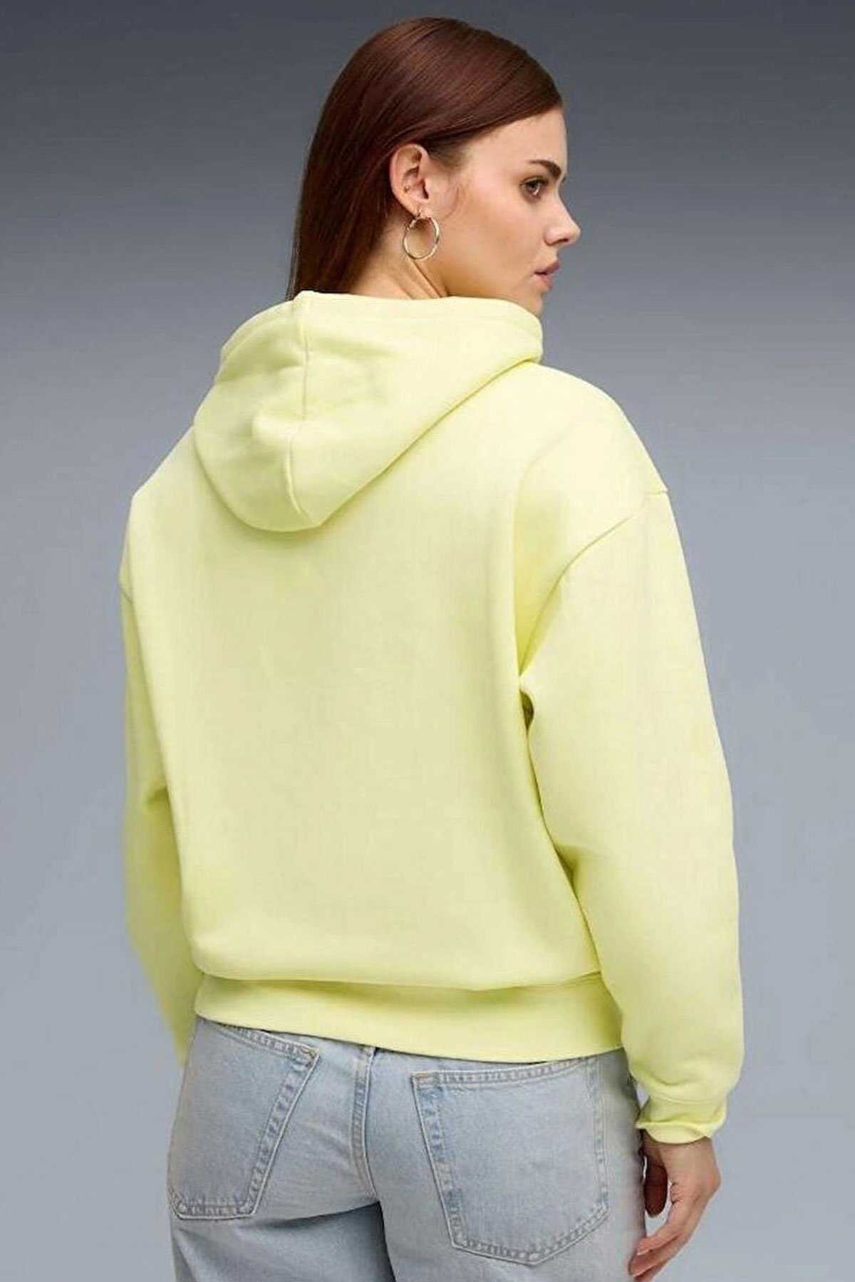 Renk: Sarı-Cinsiyet: Kadın-Kullanım Alanı: Günlük-Boy: Normal-Yaka Tipi: Kapüşonlu Yaka-Kalıp Tipi: Regular-Fermuar Modeli: Fermuarsız-Kumaş Tipi: Pamuk - Polyester-Desen: Logolu-Mevsim: Mevsimlik-Kol Tipi: Uzun Kol-Menşei: Bangladeş
