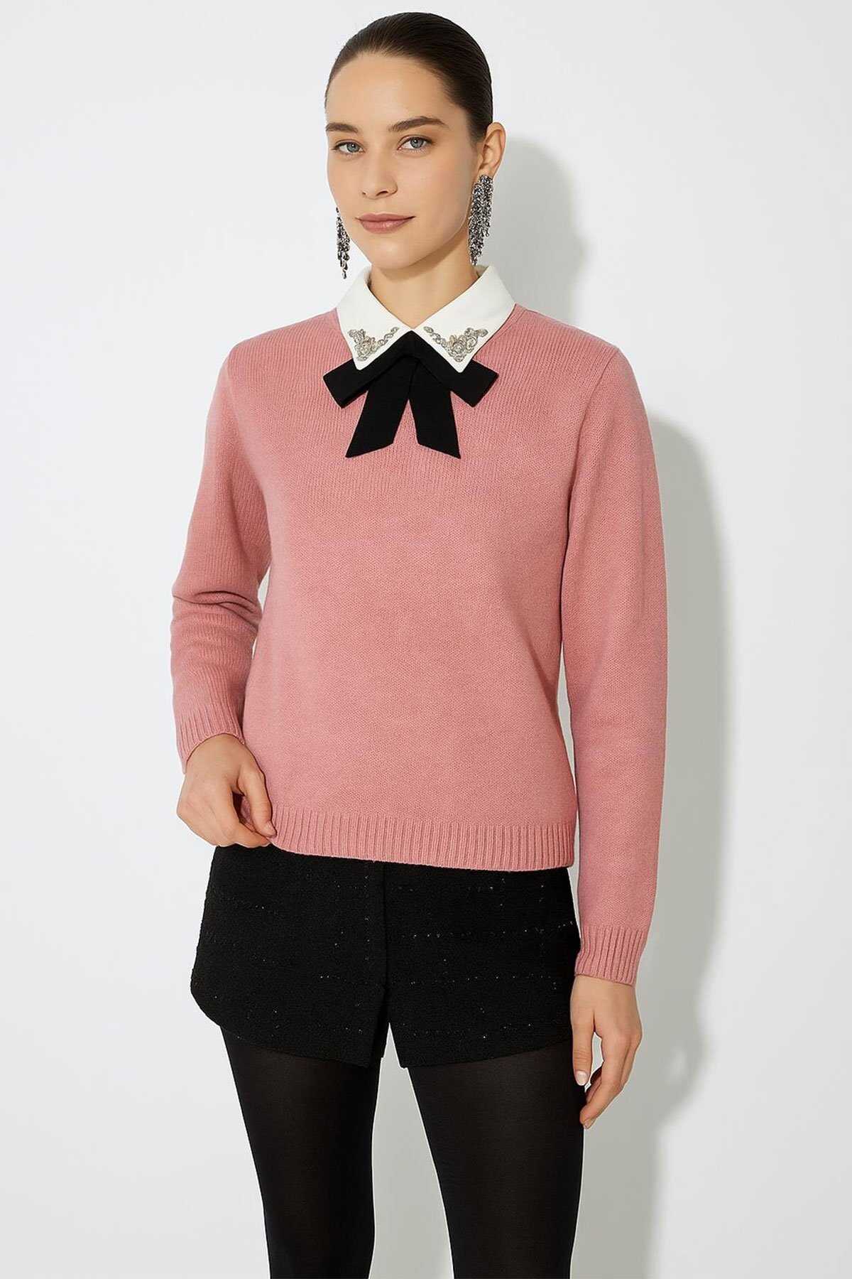 Kadın Gömlek Yaka Detaylı Kazak 25K0222K1 Pembe