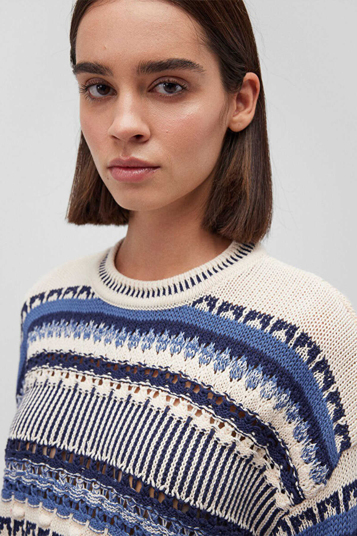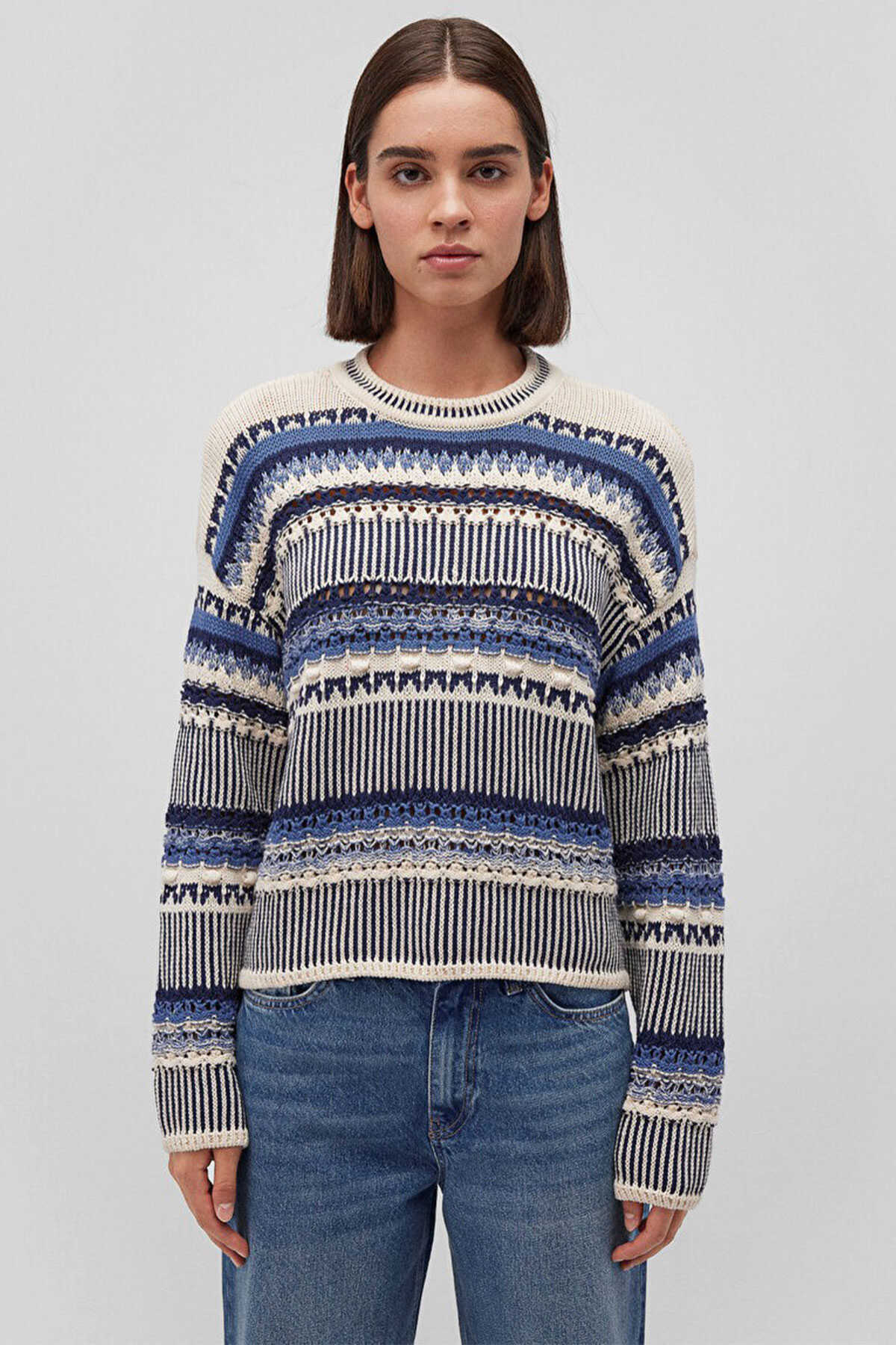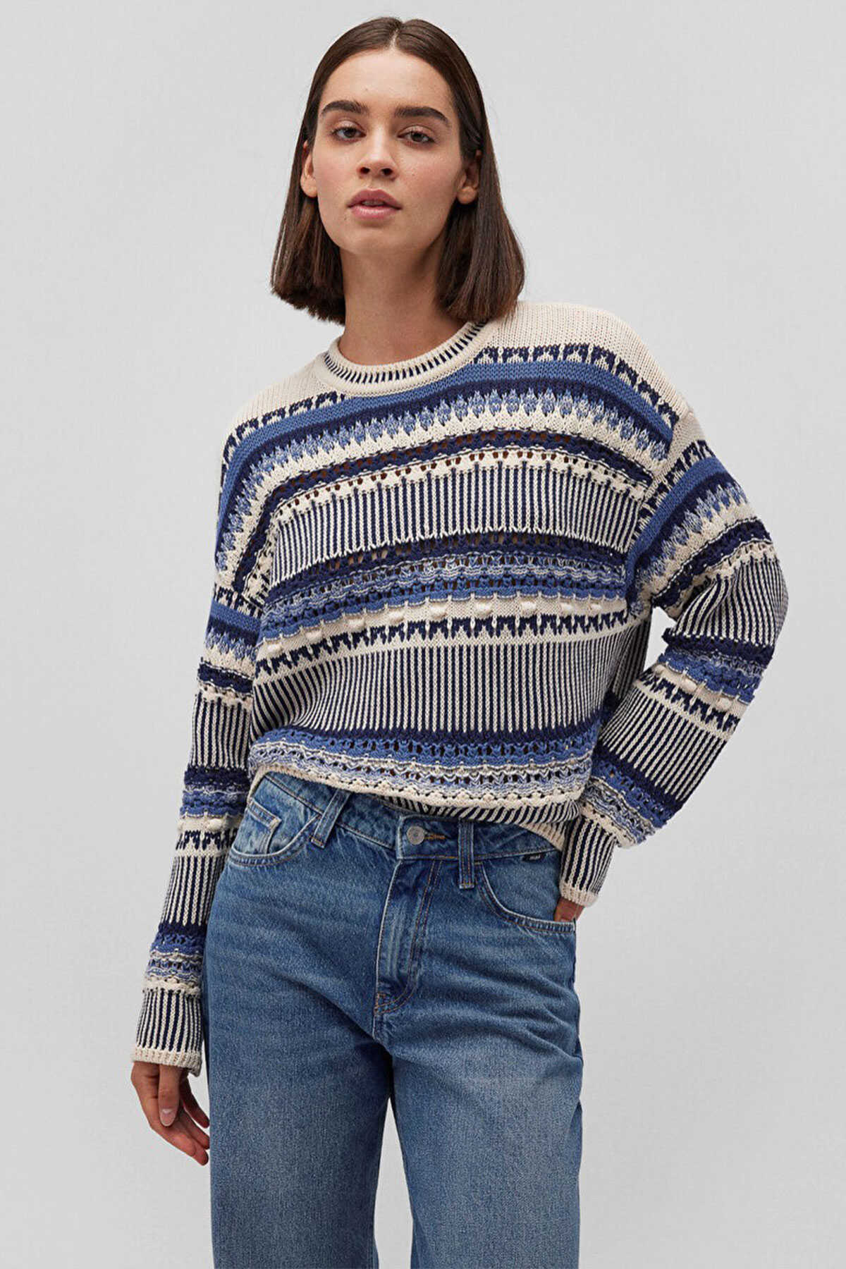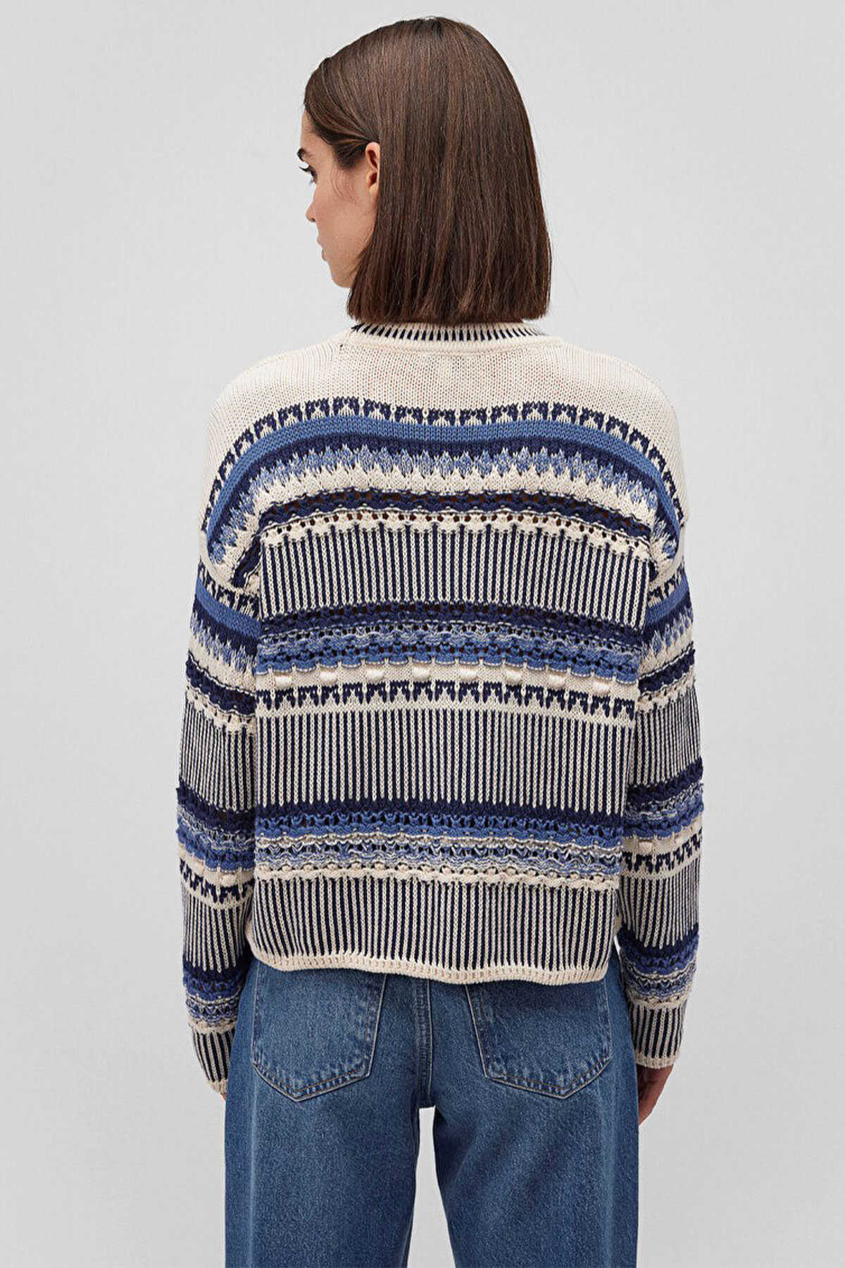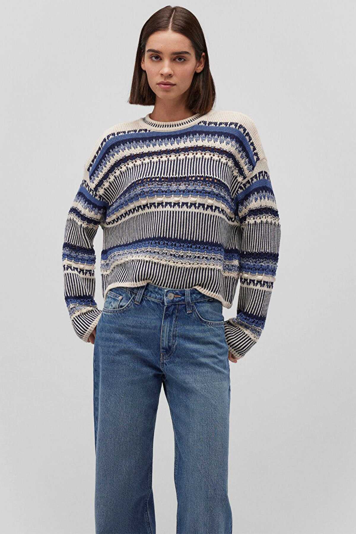 Mavi nin kadın koleksiyonundan Jakarlı Mavi Kazak-Ürün Kodu: 1710155-70737-Kumaş Bilgileri-%100 Pamuk-Manken Ölçüleri-Jean: Bel: 26 Boy: 32 Üst: S-Boy: 179 cm Bel: 59 cm Göğüs: 84 cm Kalça: 90 cm