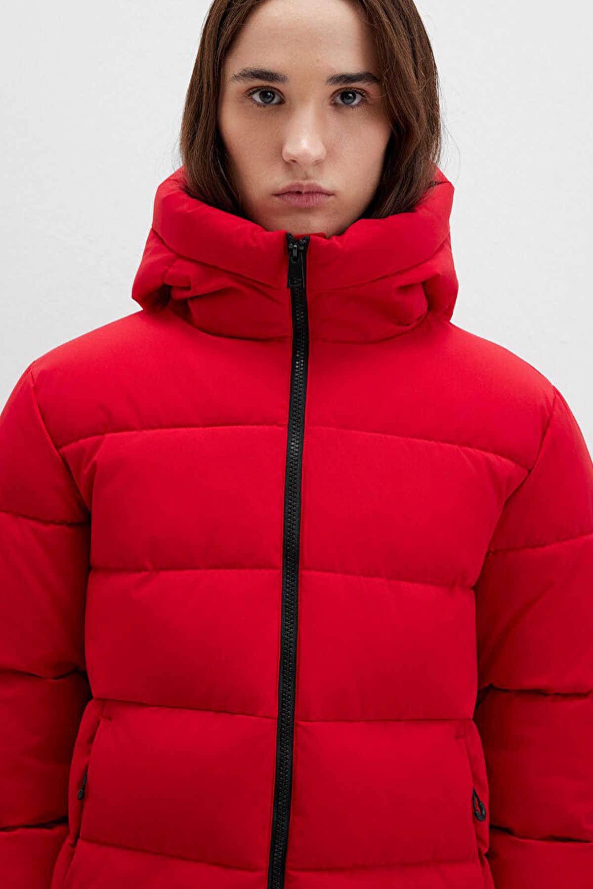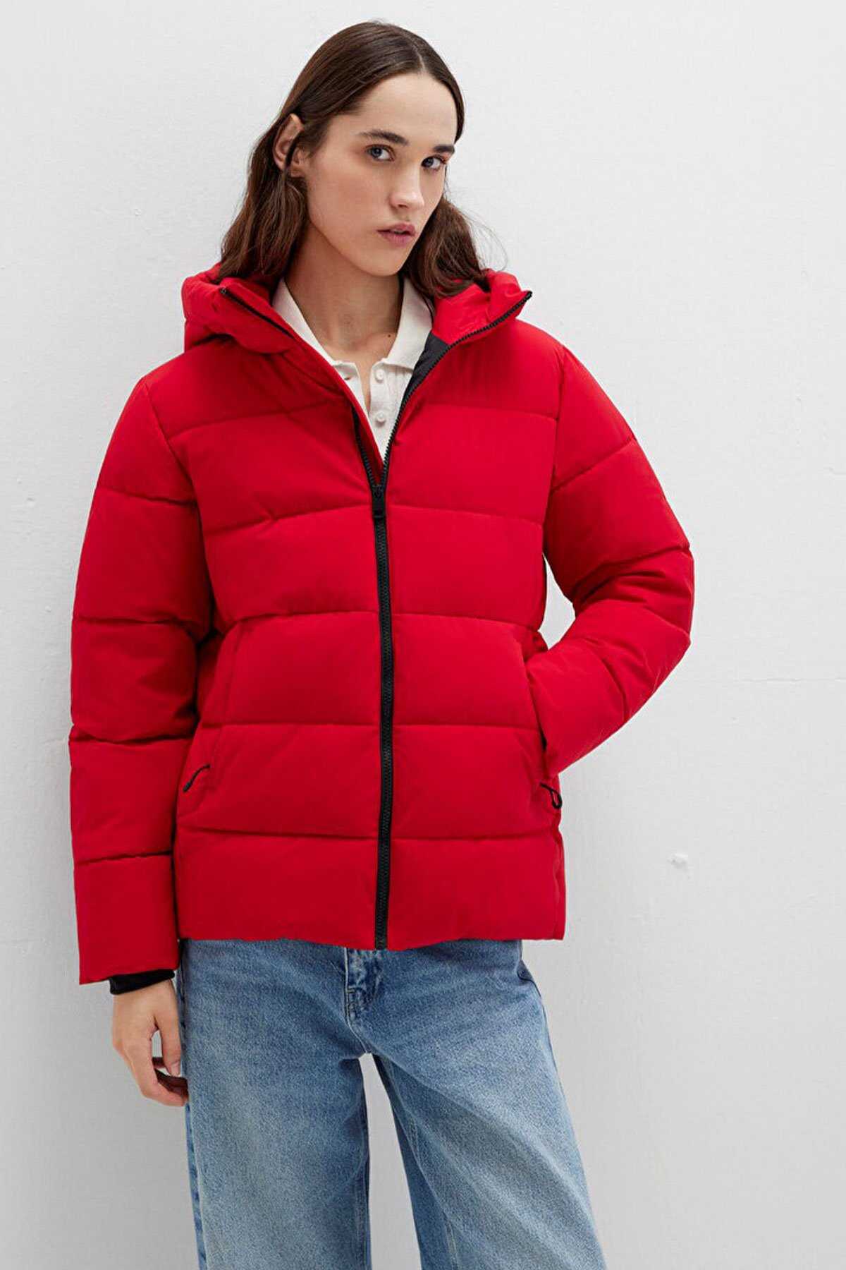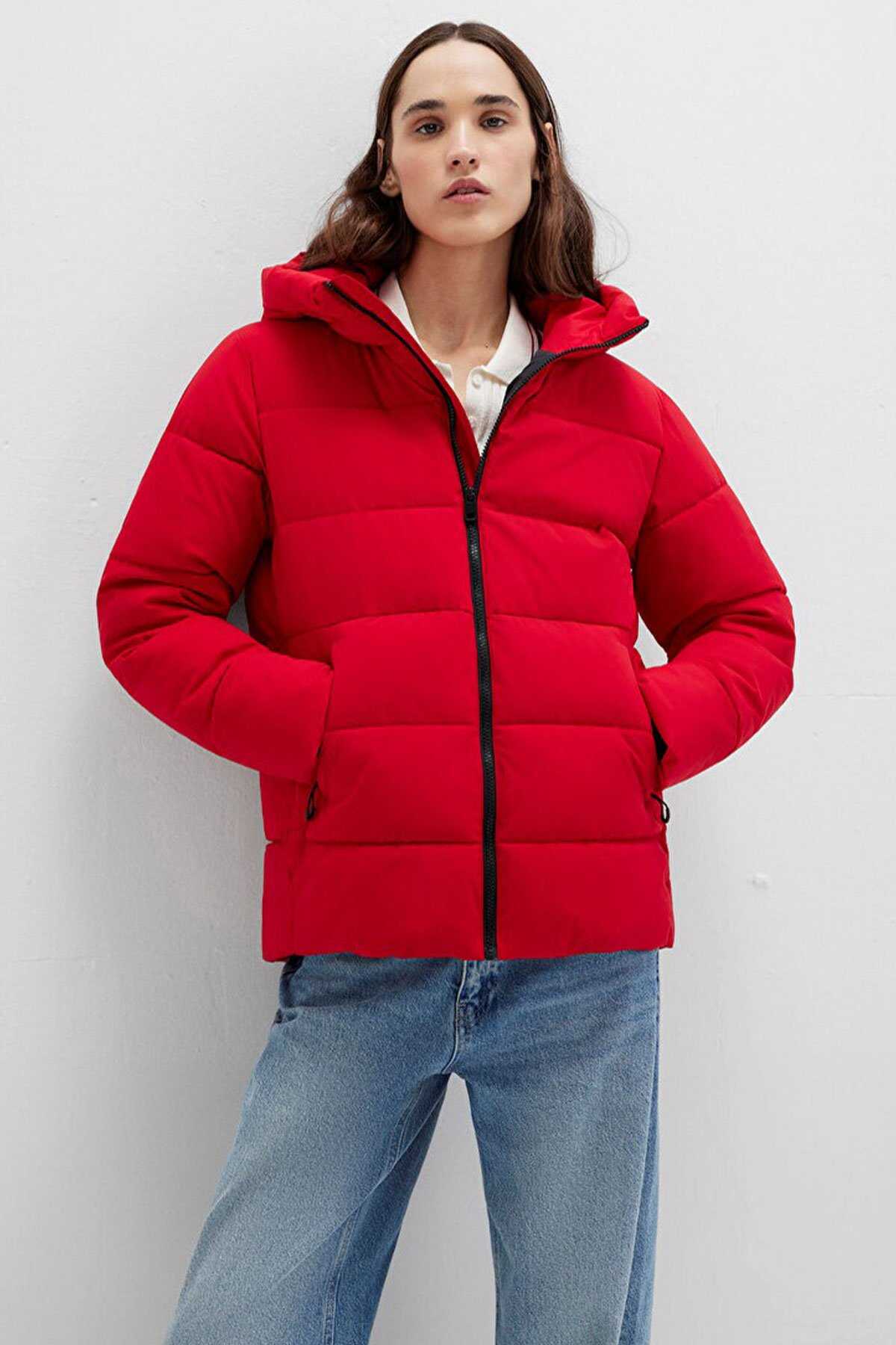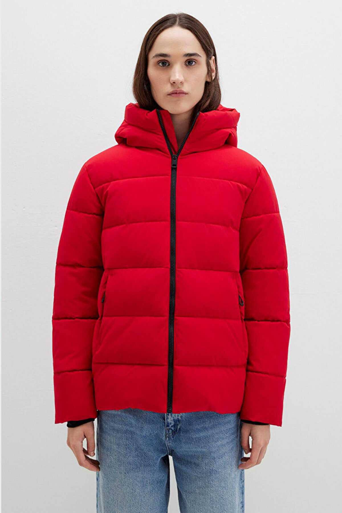 Mavinin kadın koleksiyonundan Kapüşonlu Kırmızı Şişme Mont.-Ürün Kodu: 1110704-90367-Kumaş BilgileriKumaş: %100 Polyester-Astar: %100 Polyamit-Dolgu: %100 Polyester-Menşei: Çin-