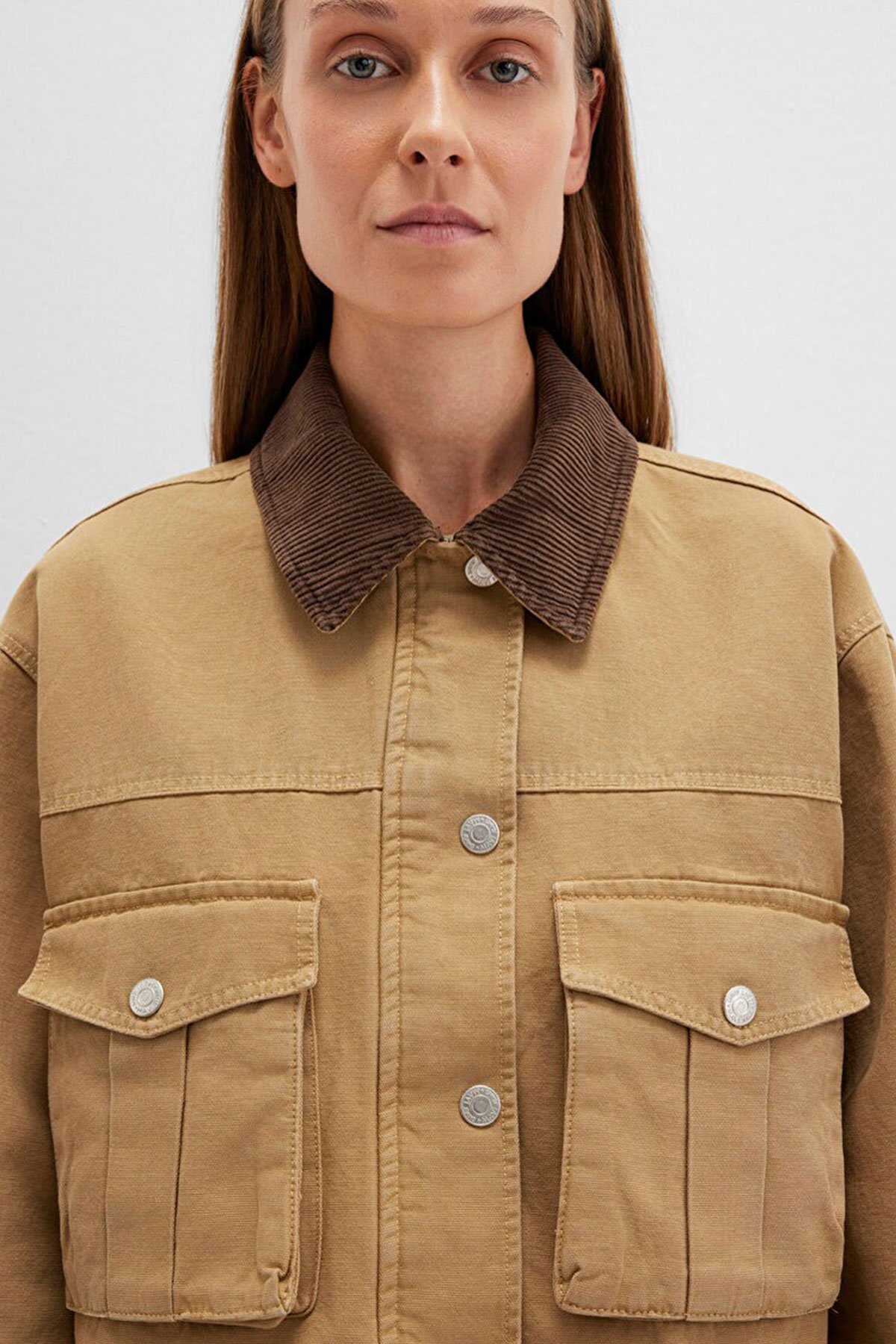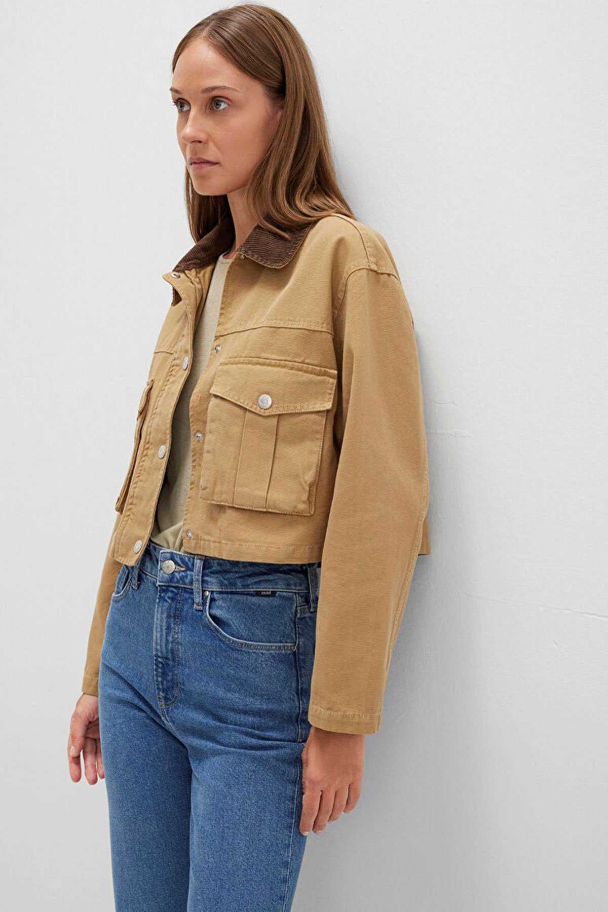 Mavi nin kadın koleksiyonundan Kadife Yakalı Bej Ceket. - Loose Fit Bol Rahat Kesim - Ürün Kodu: 1110739-81388 - Manken Ölçüleri - Jean: Bel: 26 Boy: 32 Üst: S - Boy: 180 cm Bel: 61 cm Göğüs: 80 cm Kalça: 90 cm - Menşei: Türkiye