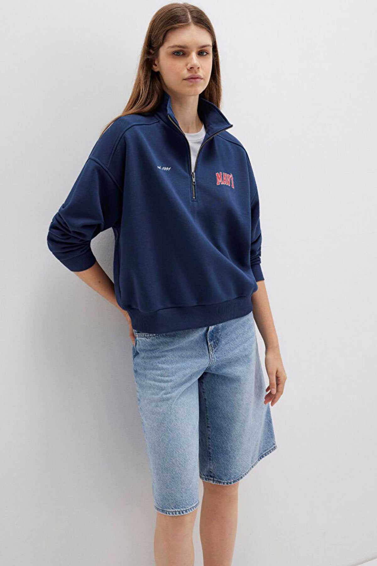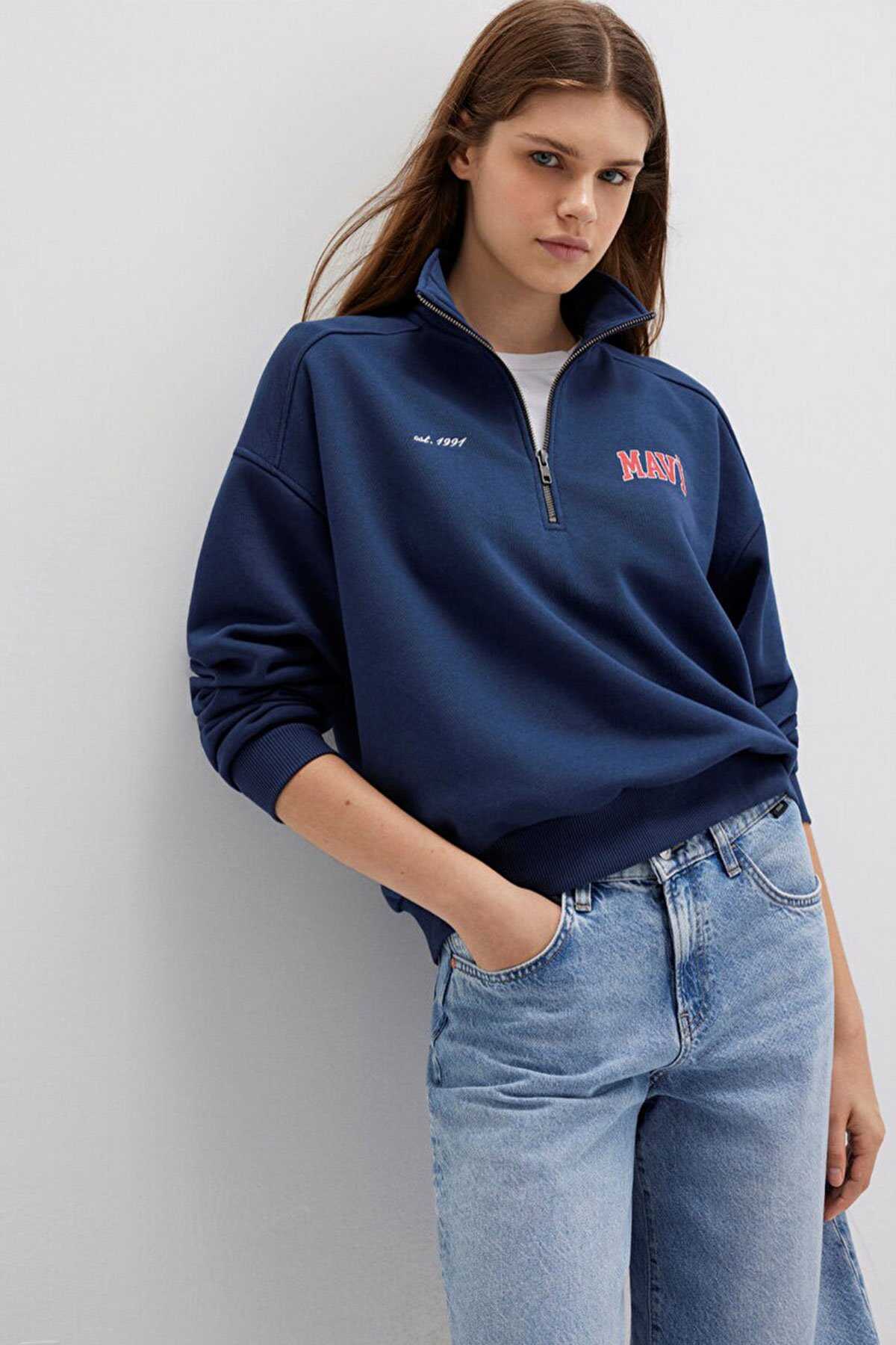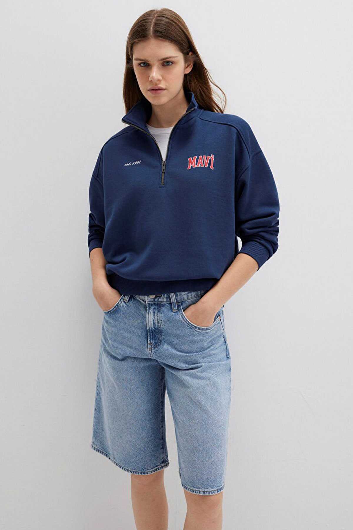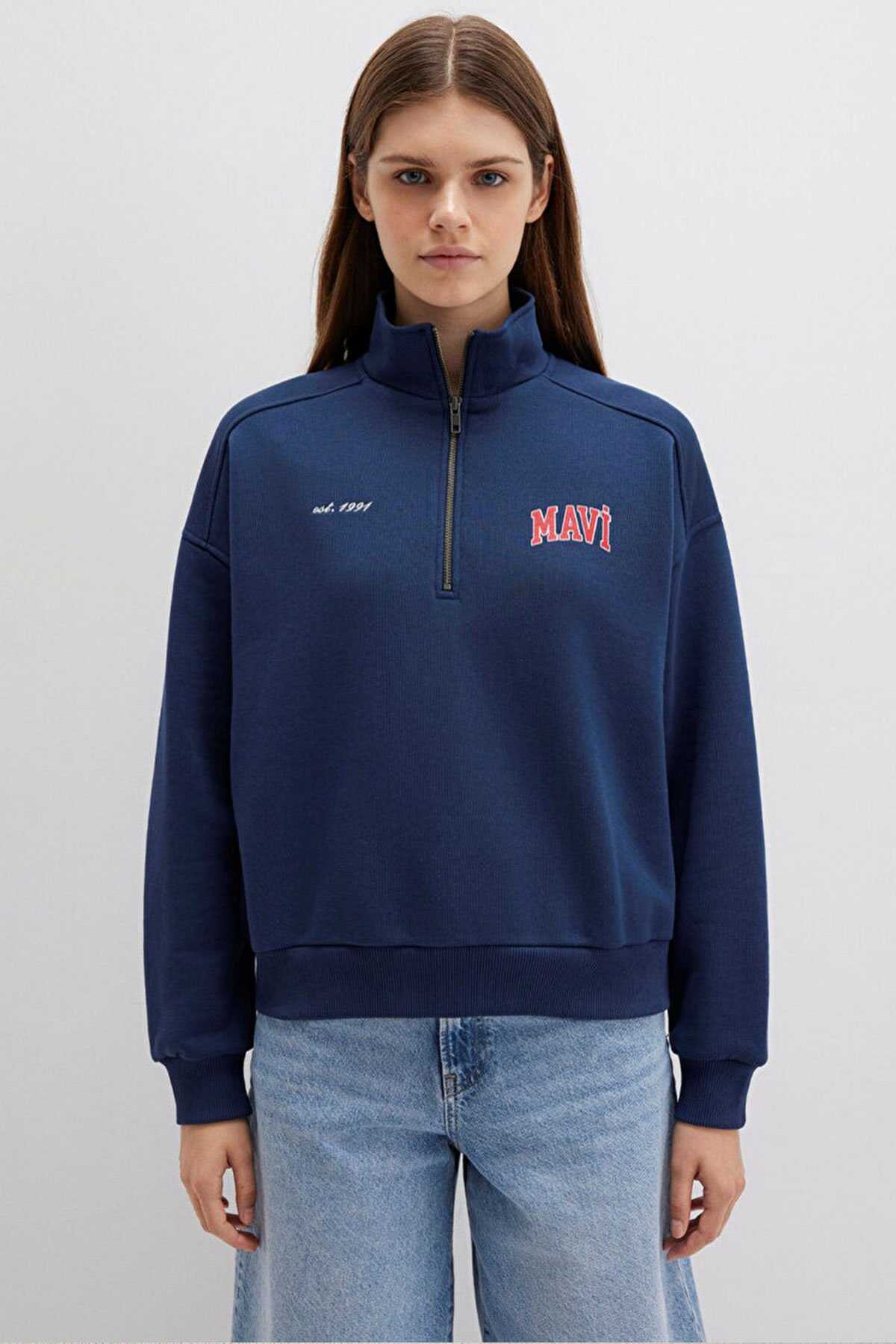 Mavi nin kadın koleksiyonundan Mavi Logo Baskılı Yarı Fermuarlı Lacivert Sweatshirt. - Loose Fit Bol Rahat Kesim - Ürün Kodu: 1S10373-70488 - Kumaş Bilgileri - %63 Pamuk - %37 Polyester - Manken Ölçüleri - Jean: Bel: 26 Üst: S - Boy: 177 cm Bel: 61 cm Göğüs: 85 cm Kalça: 90 cm - Menşei: Türkiye