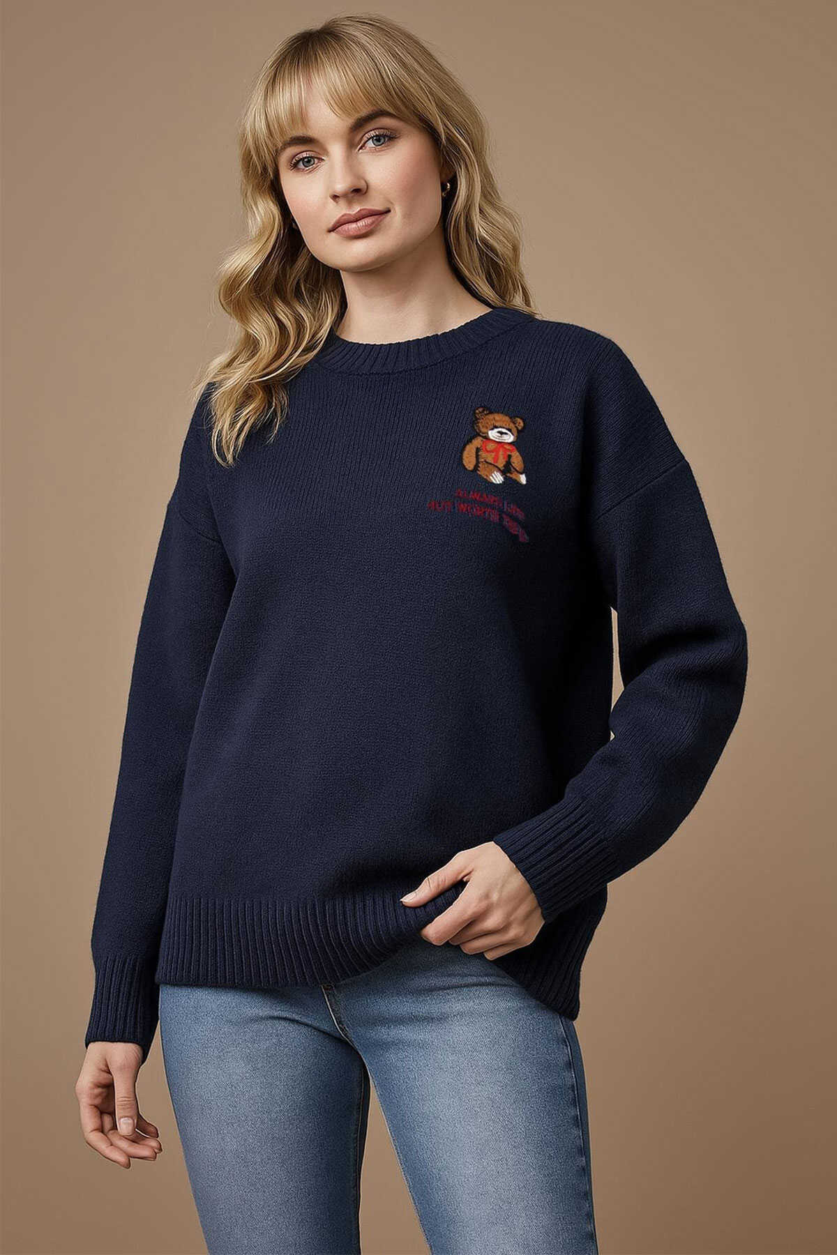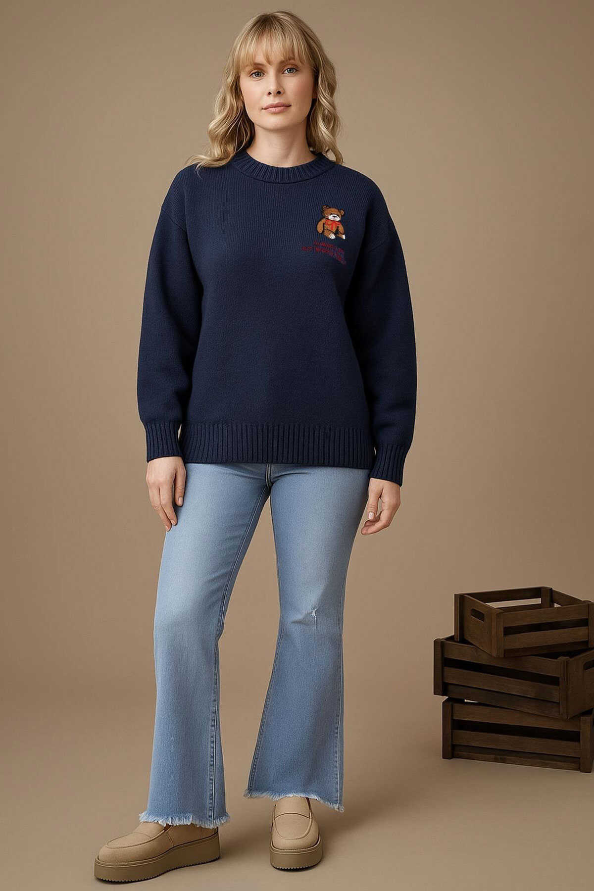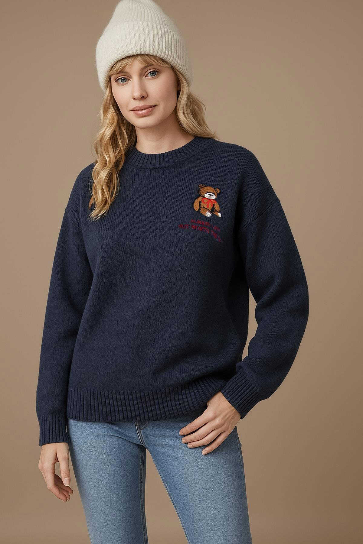 Kadın Nakışlı Kazak 25K0313K1 Mavi