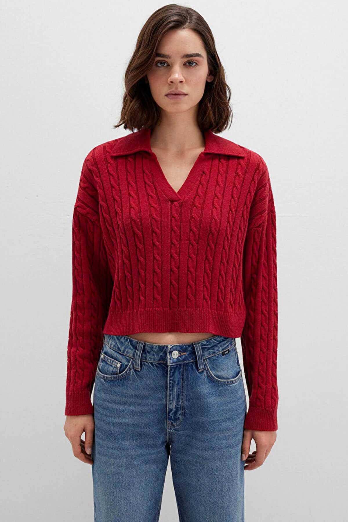 Mavi nin kadın koleksiyonundan Kırmızı Triko Polo.-Ürün Kodu: 1710717-70391-Kumaş Bilgileri-%59 Pamuk-%41 Akrilik-Menşei: Türkiye-