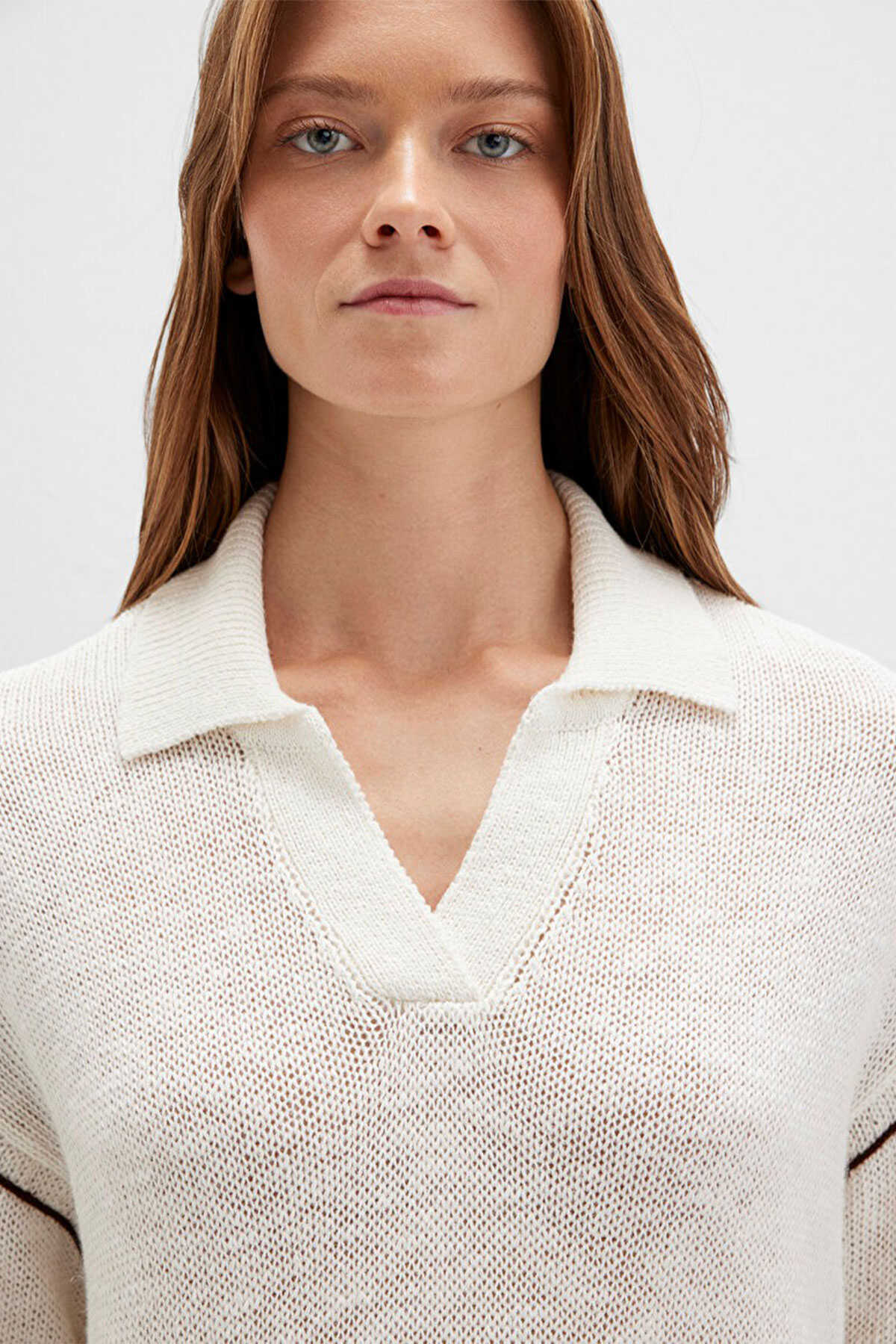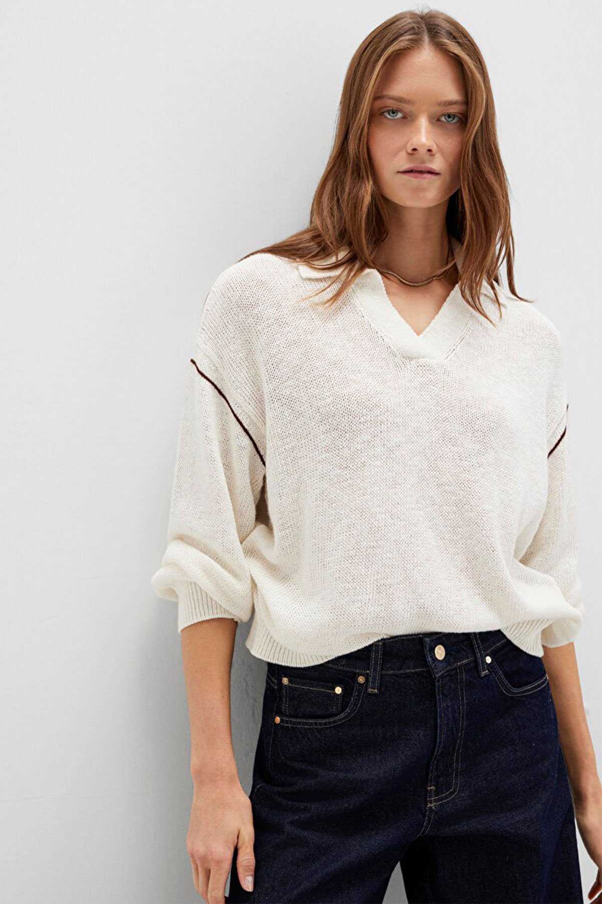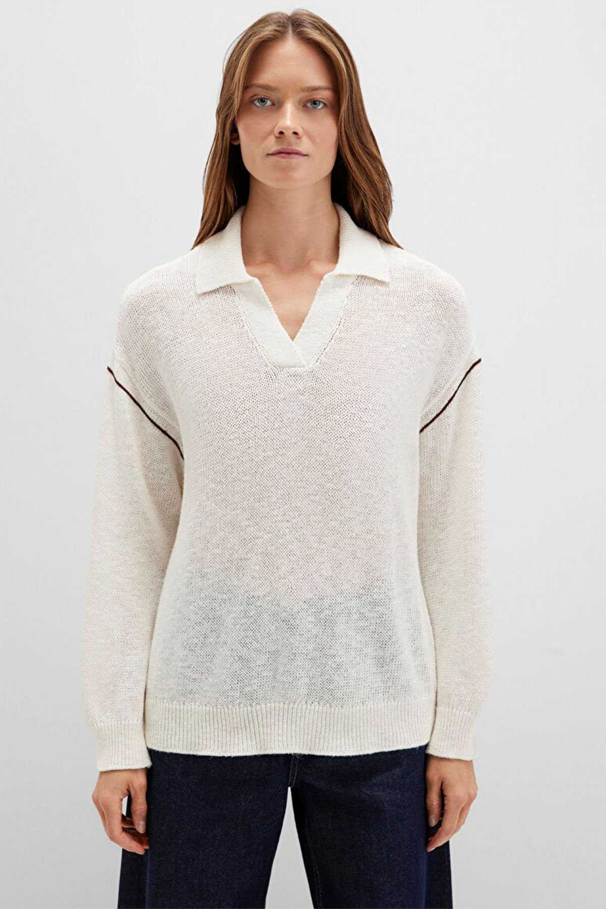 Mavi nin kadın koleksiyonundan Kol Detaylı Bej Triko Polo.-Ürün kodu: 1710834-91338-Kumaş Bilgileri-%80 Pamuk-%20 Keten-Menşei: Türkiye-