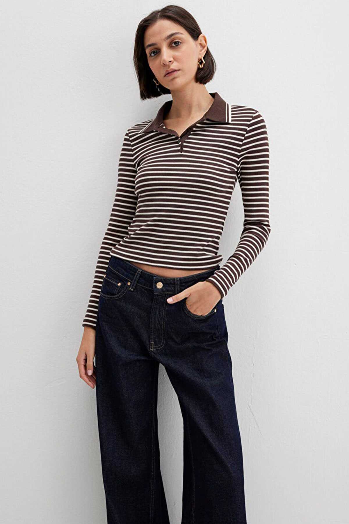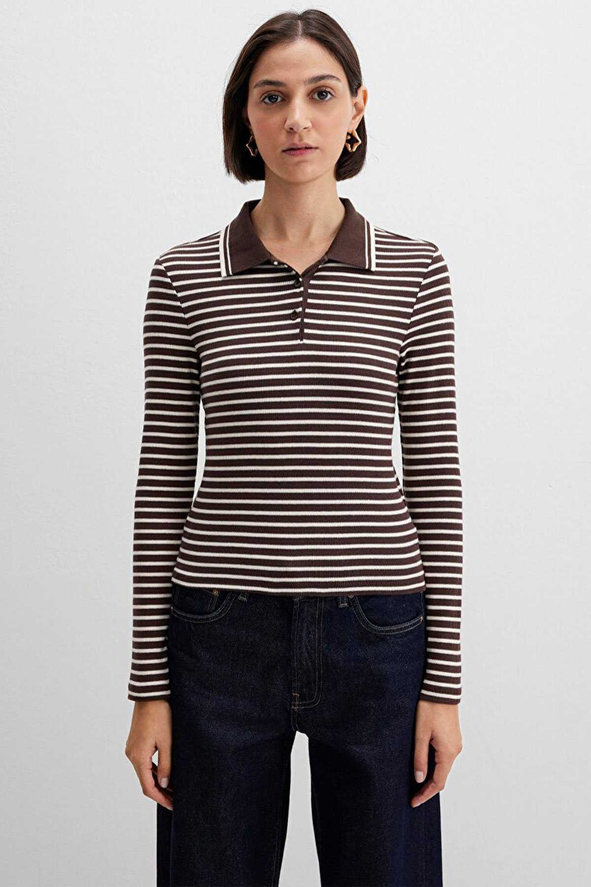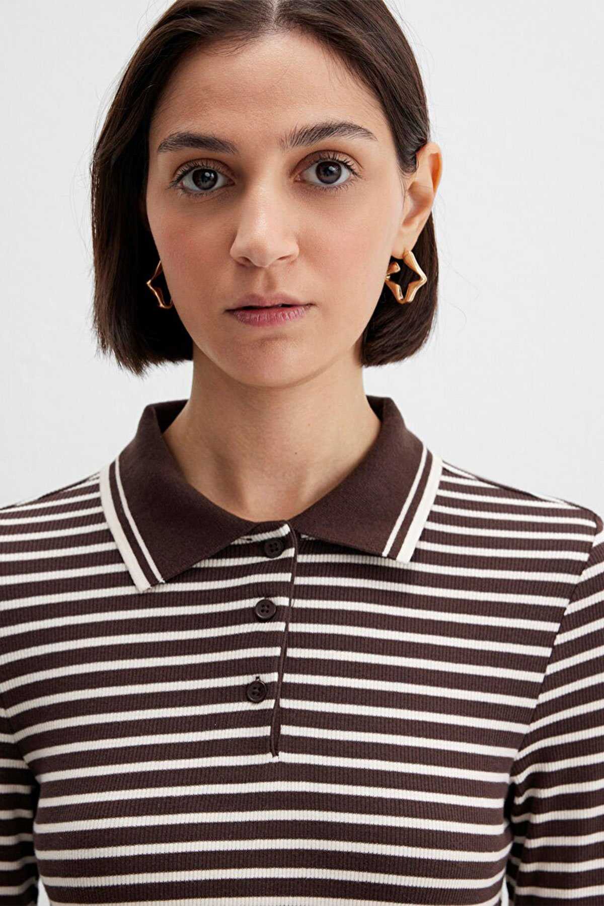 Mavi nin kadın koleksiyonundan Çizgili Kahverengi Polo Tişört.-Ürün Kodu: 1613836-91456-Kumaş Bilgileri-%95 Pamuk-%5 Elastan-Menşei: Türkiye-