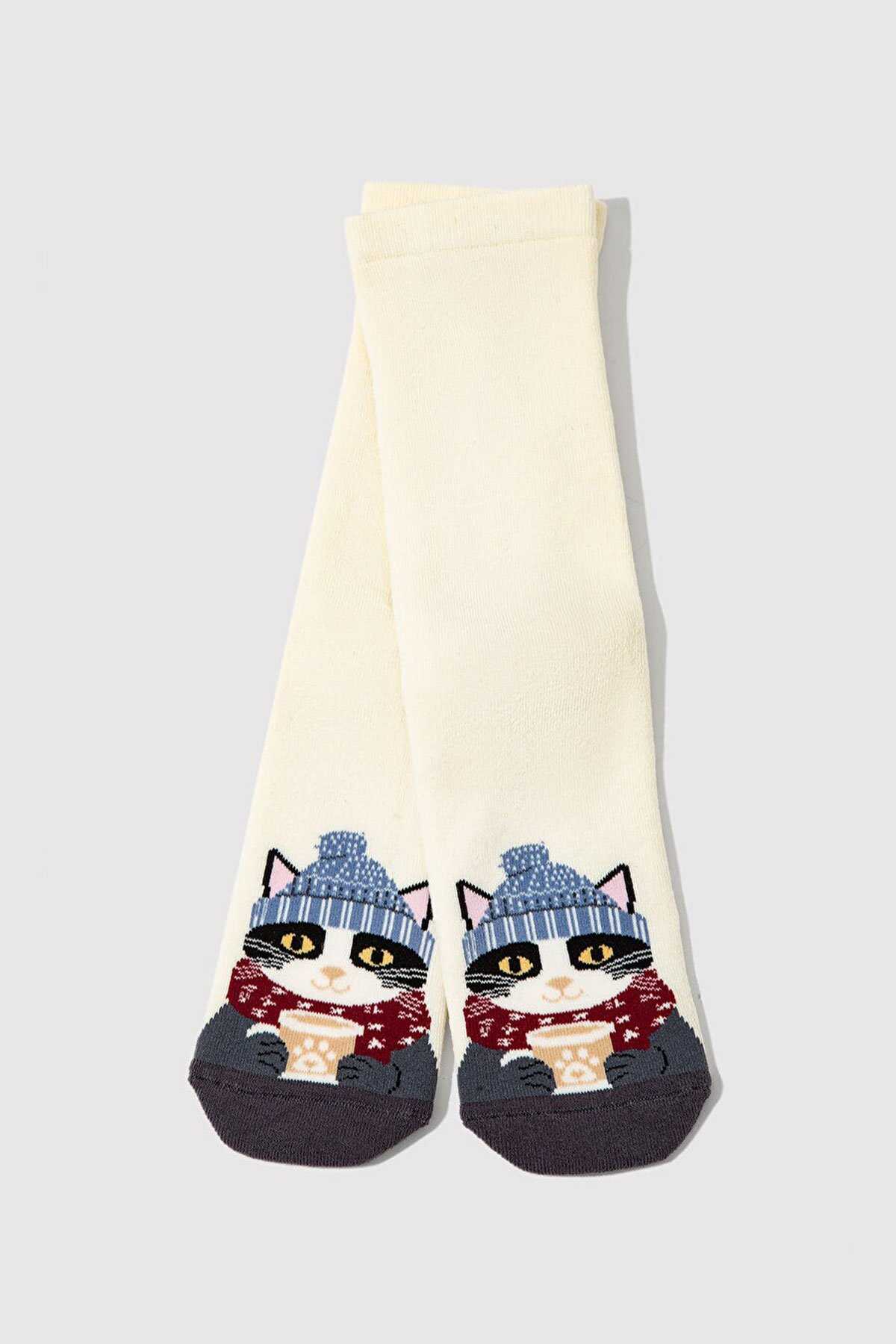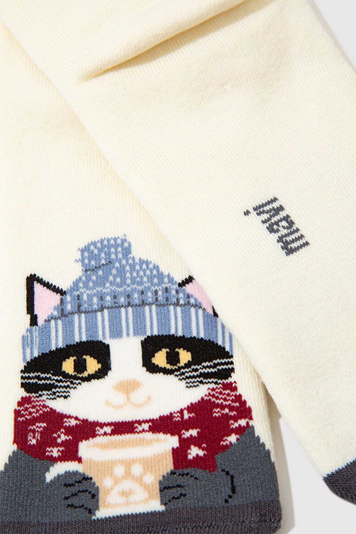 Mavi nin aksesuar koleksiyonundan Kedi Baskılı Ekru Soket Çorap.-Ürün Kodu: 1913538-70053-Kumaş Bilgileri-%81 Pamuk-%18 Polyamit-%1 Elastan-Menşei: Türkiye-