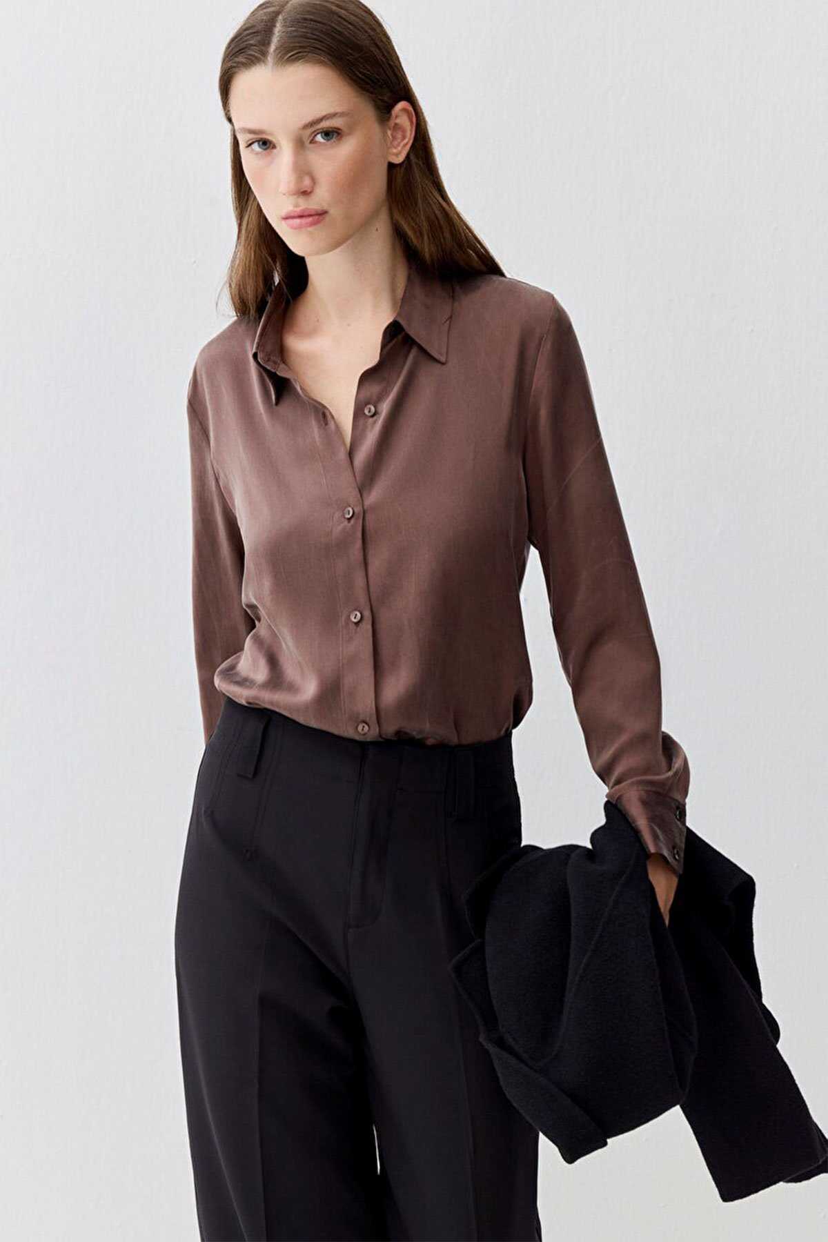 Sadeliğin özen ve kaliteyle buluştuğu Mavi Edition koleksiyonundan Kahverengi İpek Gömlek. -Yüzde yüz ipek içeriği nedeniyle hassas bakım gerektirir. -Bu ürüne uygulanan efekt özel bir teknik kullanılarak geliştirilmiştir. -Kullanım süresince üzerindeki efektlerin zenginleşmesiyle kendine özgü bir görünüm kazanır. -Zamanla belirginleşen bu efektler ürüne daha karakteristik bir dokunuş katar. -Mavi Edition Koleksiyonu yalın çizgileri ve kendine güvenen tarzıyla günümüz moda dünyasında rafine şıklığın ifadesi olarak öne çıkıyor.-Ürün Kodu: 1211269-87537-Kumaş Bilgileri-%100 İpek (Dut İpeği)-Menşei: Türkiye-