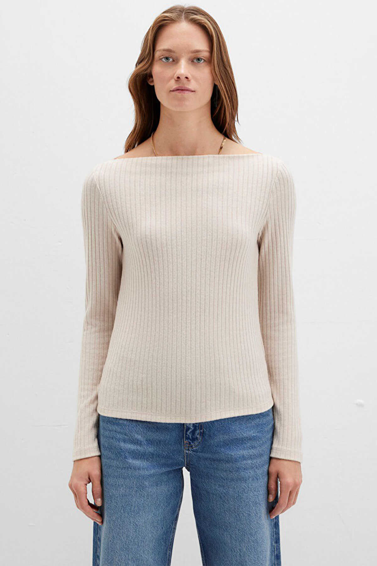 Mavi nin kadın koleksiyonundan Uzun Kollu Geniş Yaka Bej Tişört.-Ürün Kodu: 1613596-85576-Kumaş Bilgileri-%68 Polyester-%28 Viskoz-%4 Elastan-Menşei: Türkiye-