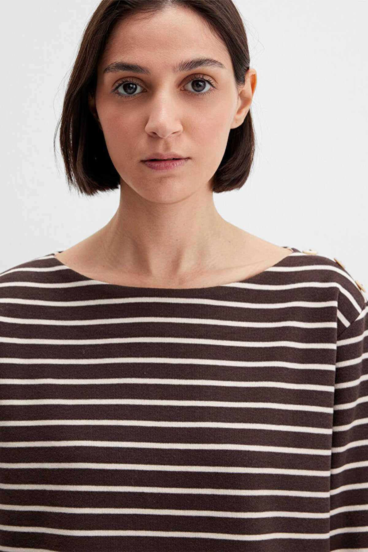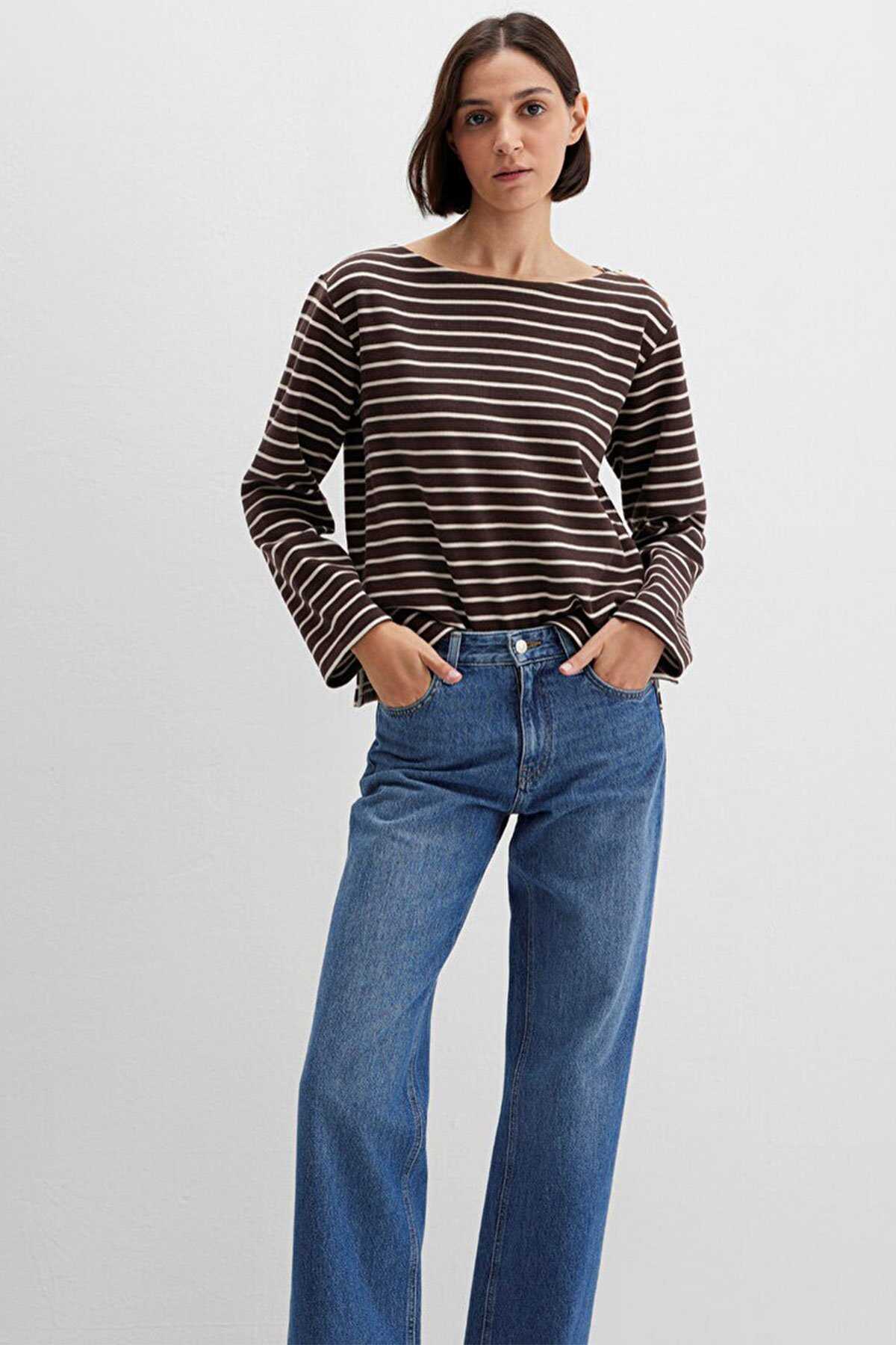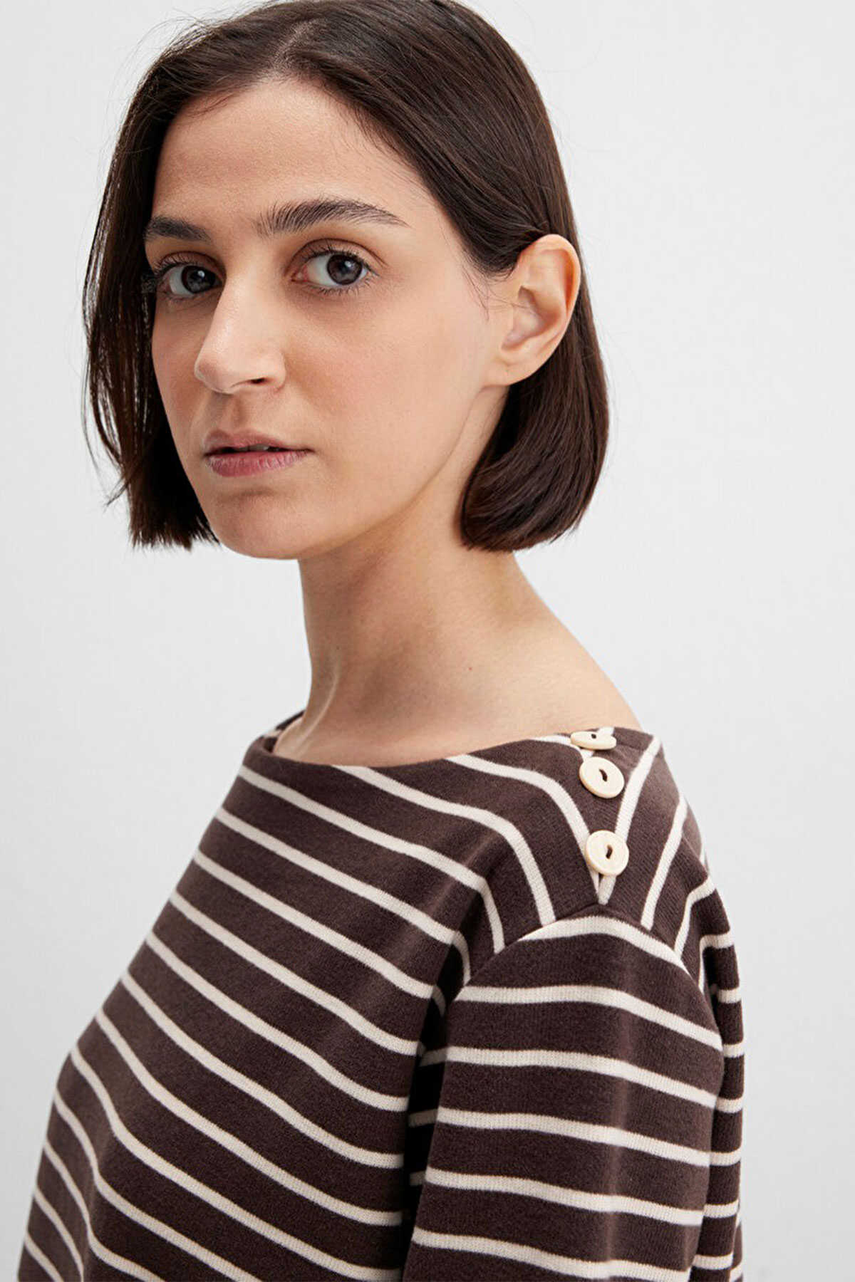 Mavinin kadın koleksiyonundan Çizgili Kahverengi Tişört.-Ürün Kodu: 1613597-91190-Kumaş Bilgileri-%60 Pamuk-%40 Polyester-Menşei: Türkiye-