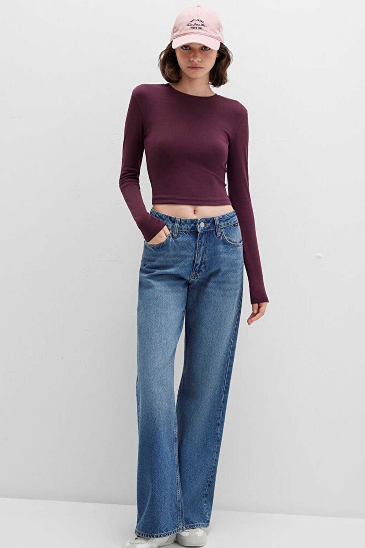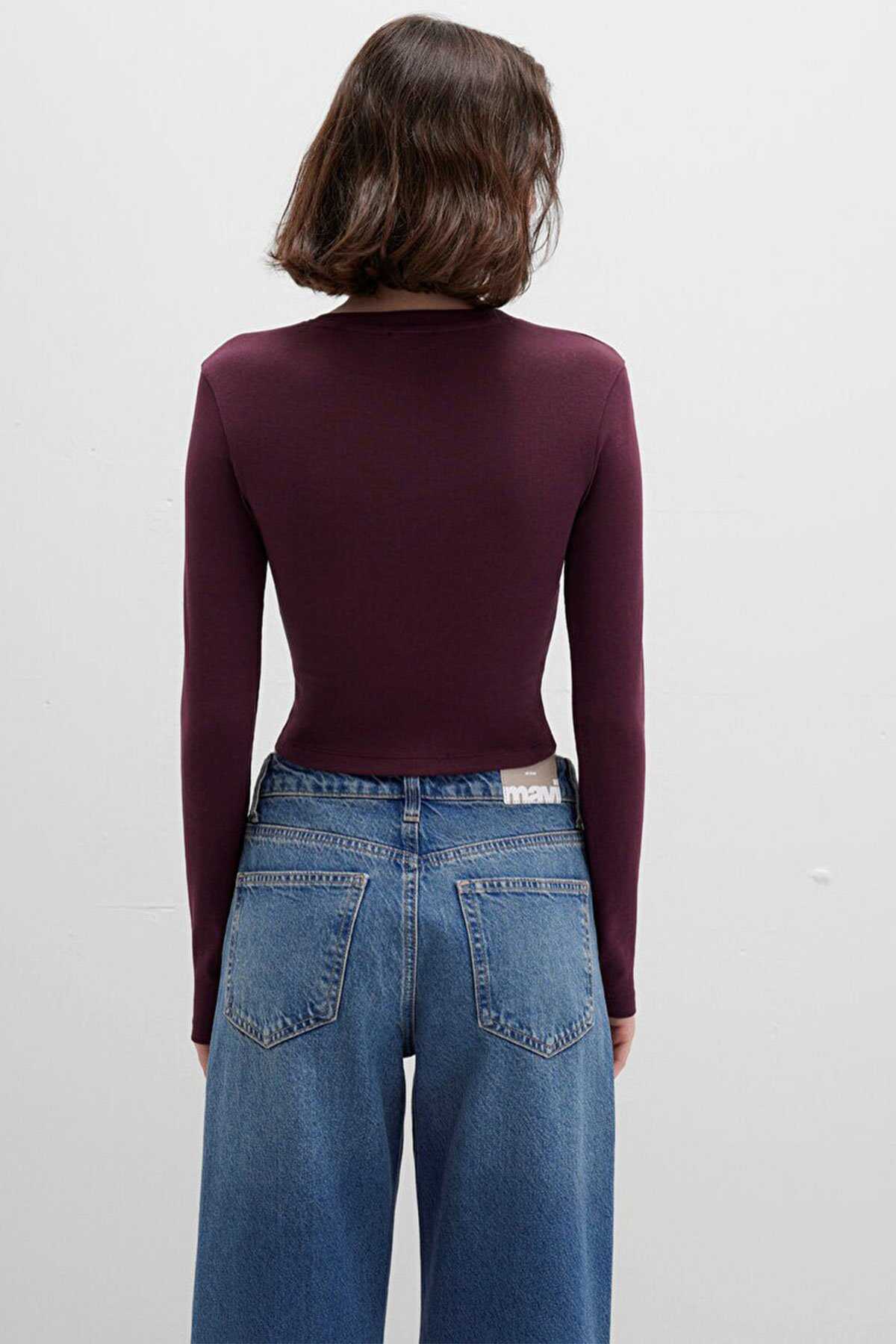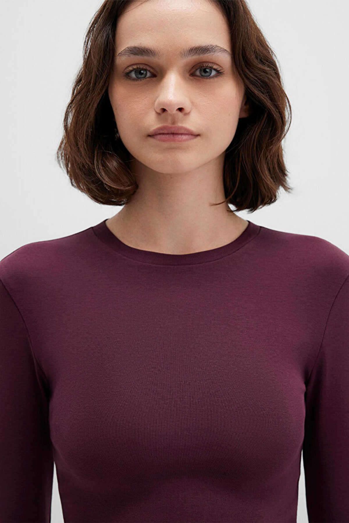 Crop kısa kesim. Bisiklet yaka. Uzun kol. Uzun Kollu Mor Crop Basic Tişört.-Ürün Kodu: 1612822-70434-Kumaş Bilgileri-%98 Pamuk-%2 Elastan-Menşei: Türkiye-