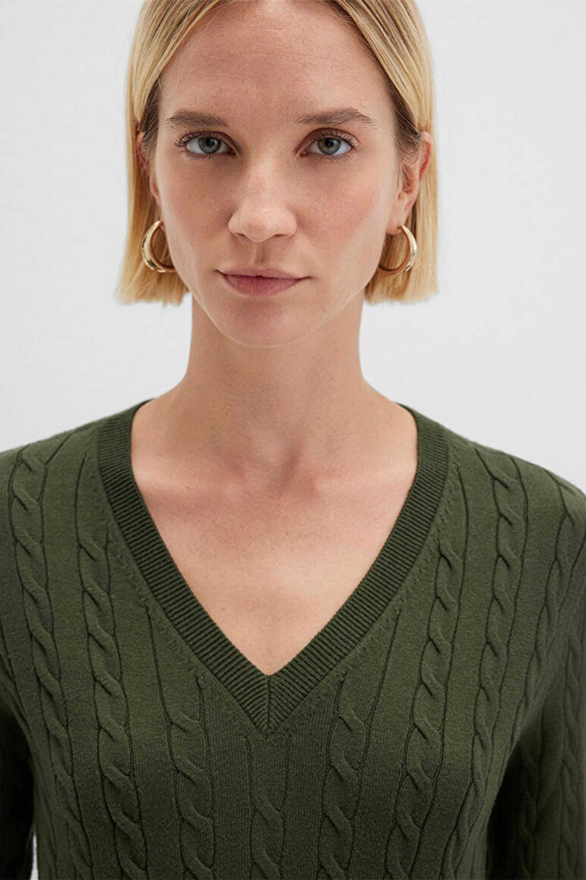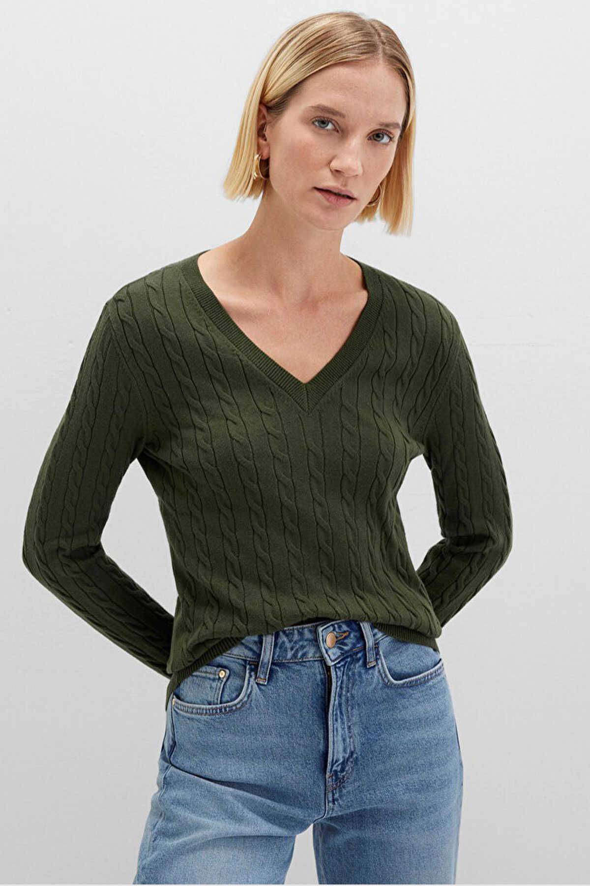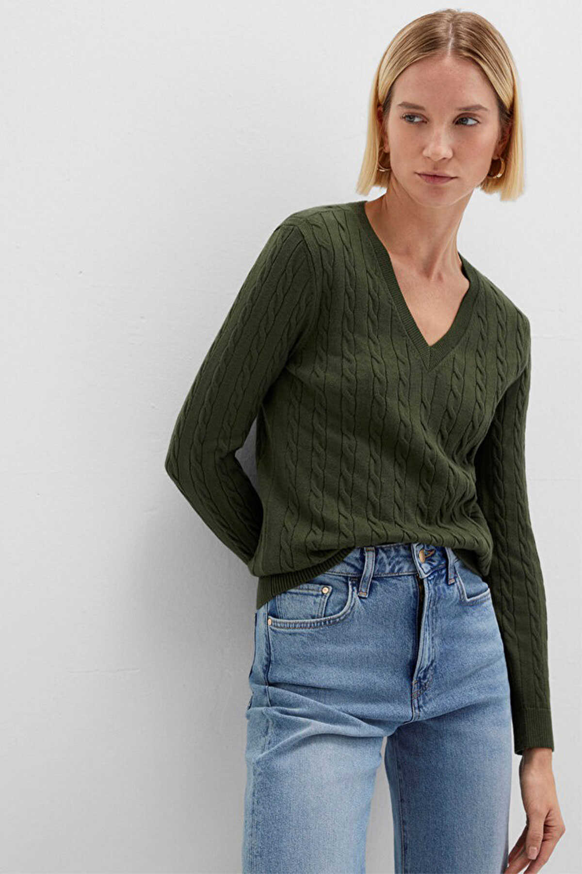Mavi nin kadın koleksiyonundan V Yaka Haki Kazak - Slim Fit Dar Kesim - Ürün Kodu: 1710340-71551 - Kumaş Bilgileri - %49 Viskoz - %30 Polyester - %21 Polyamit - Manken Ölçüleri - Jean: Bel: 26 Boy: 32 Üst: S - Boy: 177 cm Bel: 61 cm Göğüs: 82 cm Kalça: 89.5 cm - Menşei: Türkiye