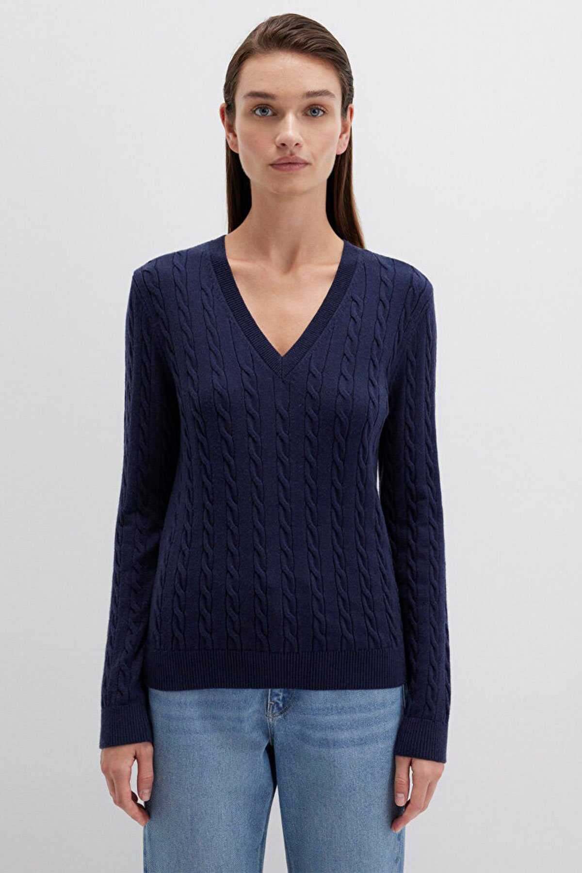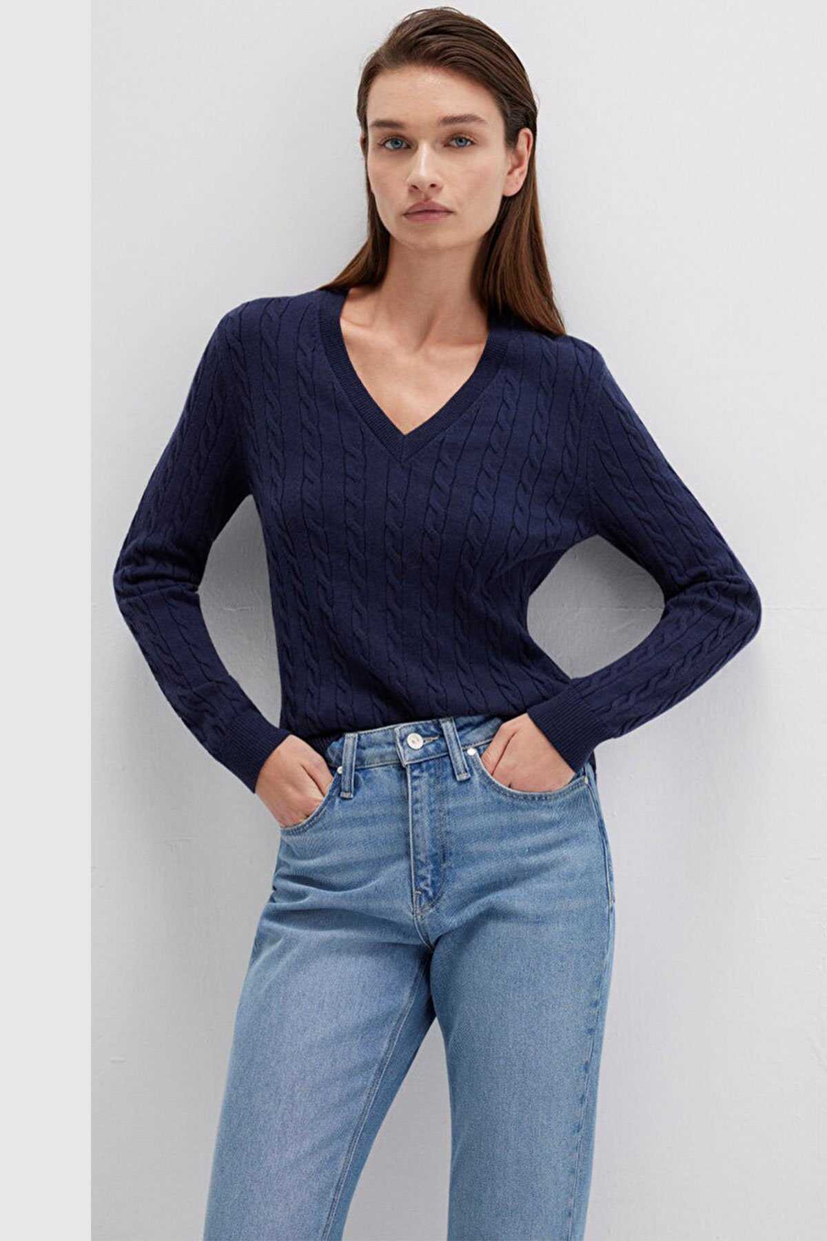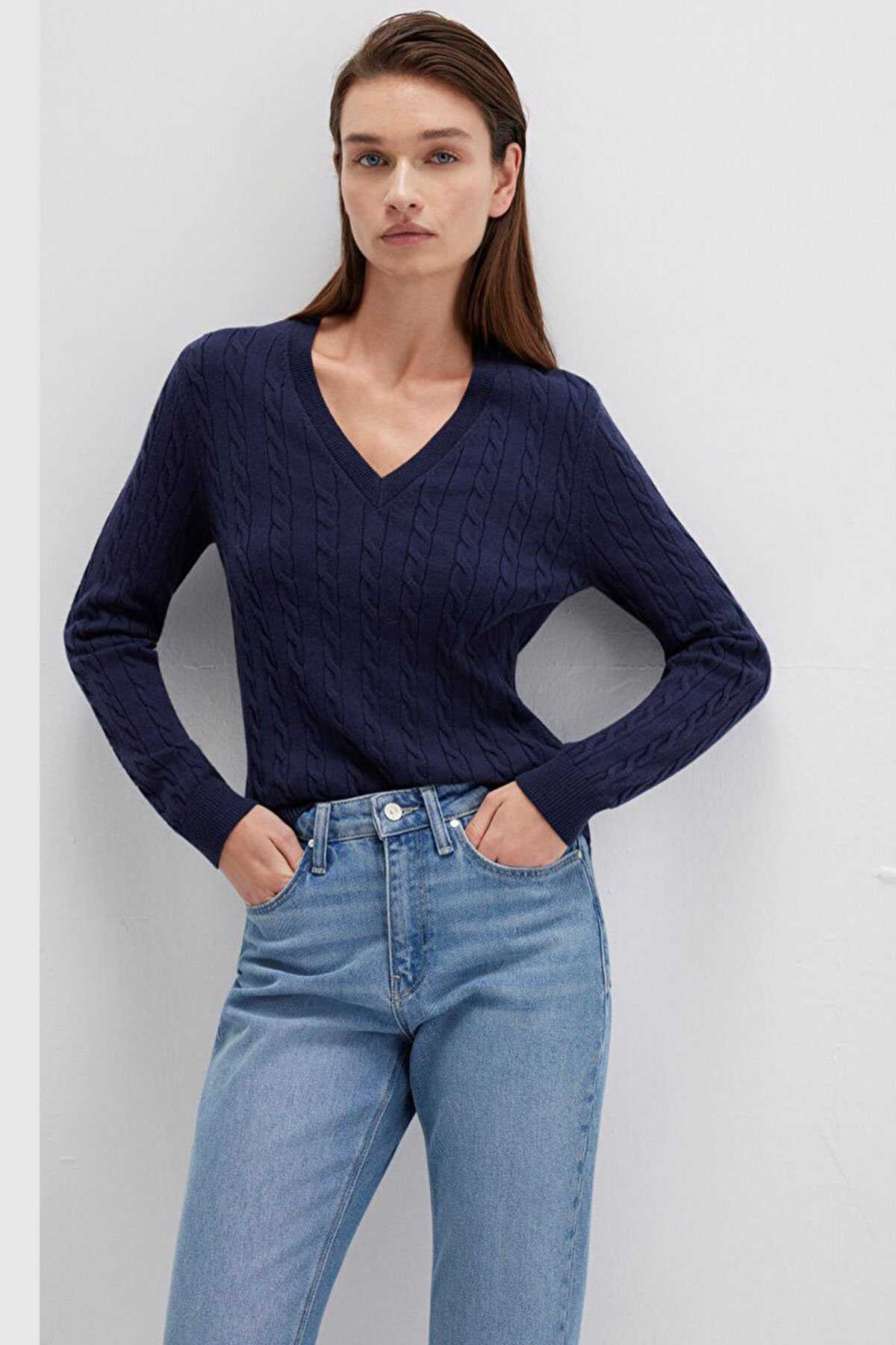 Mavi nin kadın koleksiyonundan V Yaka Lacivert Kazak. - Slim Fit Dar Kesim - Ürün Kodu: 1710340-84371 - Kumaş Bilgileri - %49 Viskoz - %31 Polyester - %20 Polyamit - Manken Ölçüleri - Jean: Bel: 26 Boy: 32 Üst: S - Boy: 176 cm Bel: 61 cm Göğüs: 80.5 cm Kalça: 90.5 cm - Menşei: Türkiye
