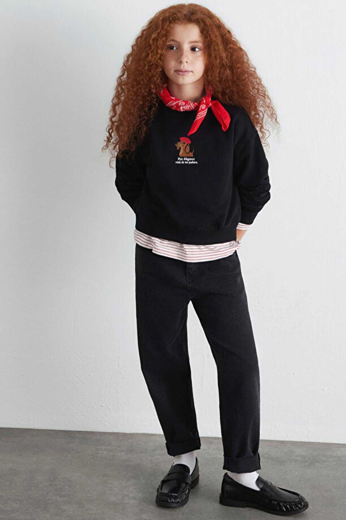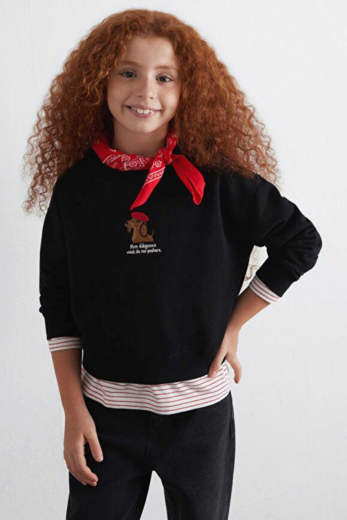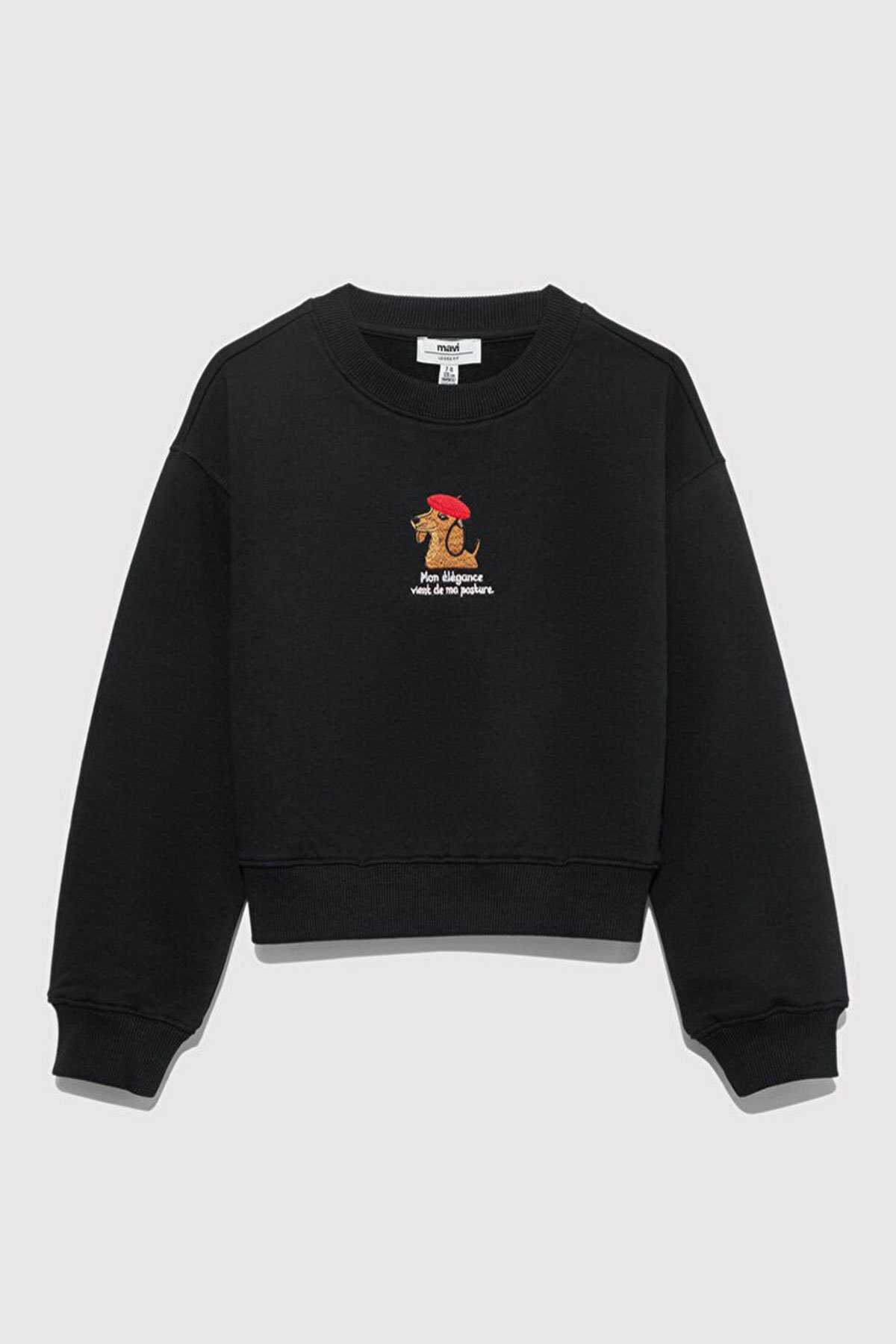 Mavi nin kız çocuk koleksiyonundan Köpek Nakışlı Siyah Sweatshirt.-Ürün Kodu: 7S10132-900-Kumaş Bilgileri-%70 Pamuk-%30 Polyeste-Manken Ölçüleri-Jean: Bel: 7-8 Yaş Üst: 7-8 Yaş-Menşei:Türkiye