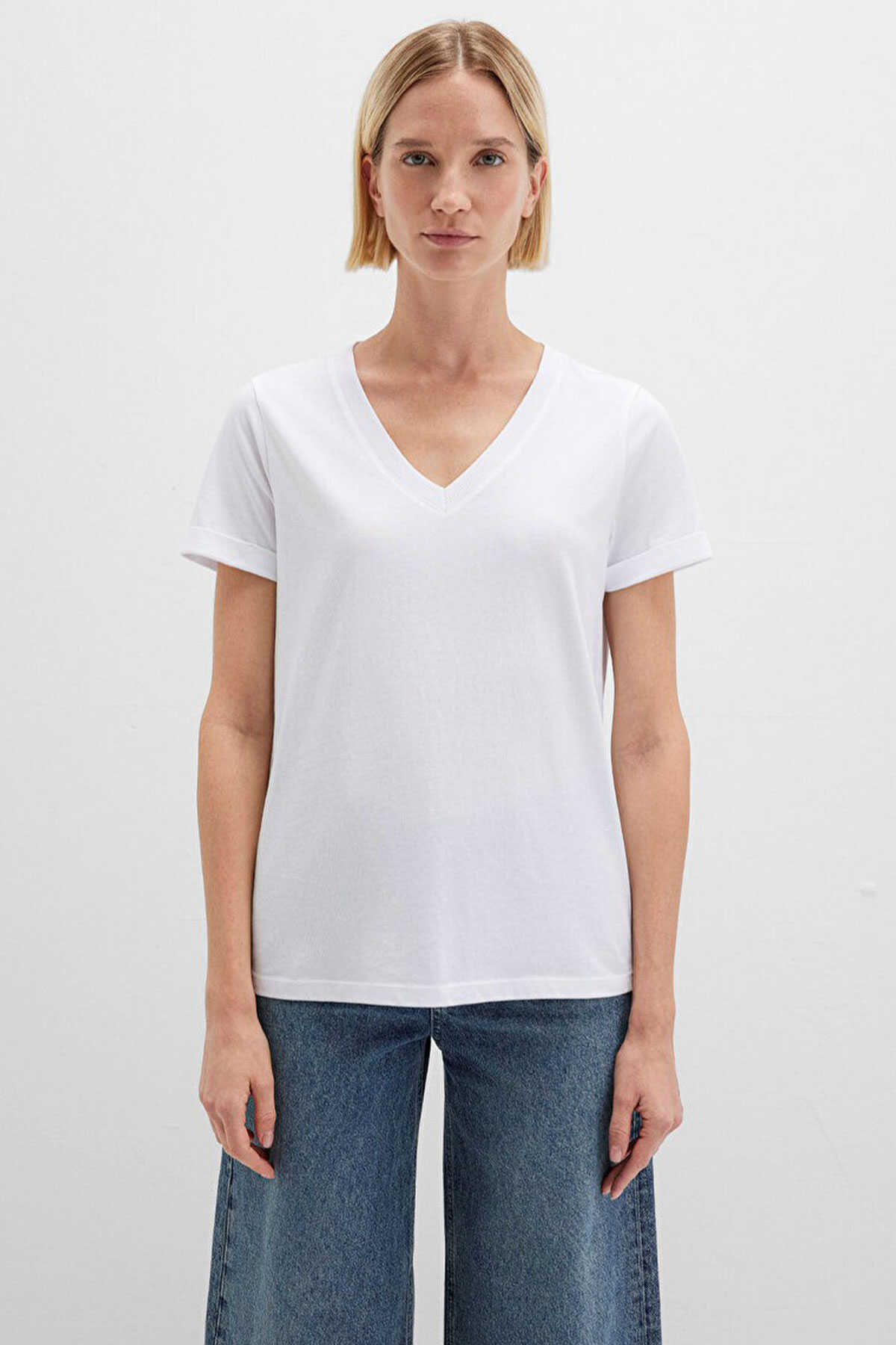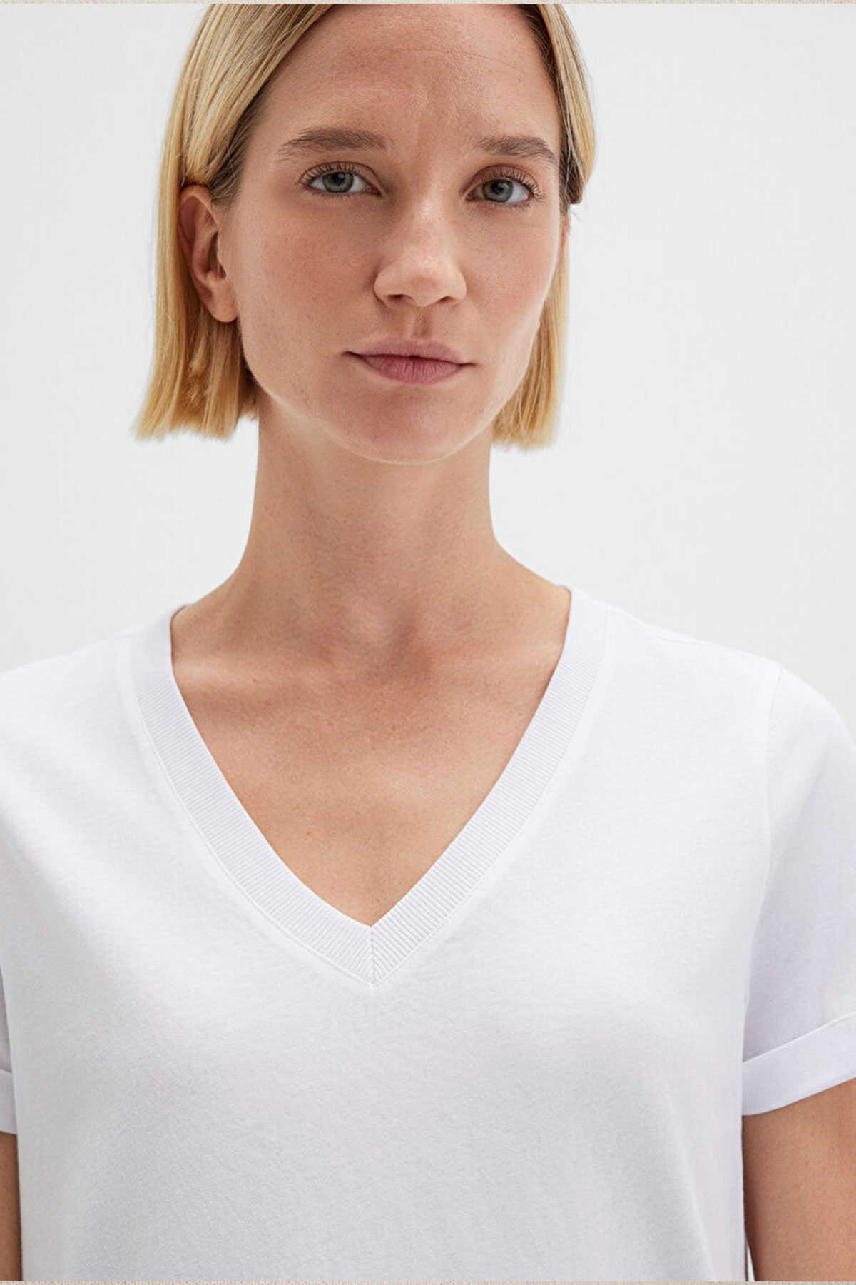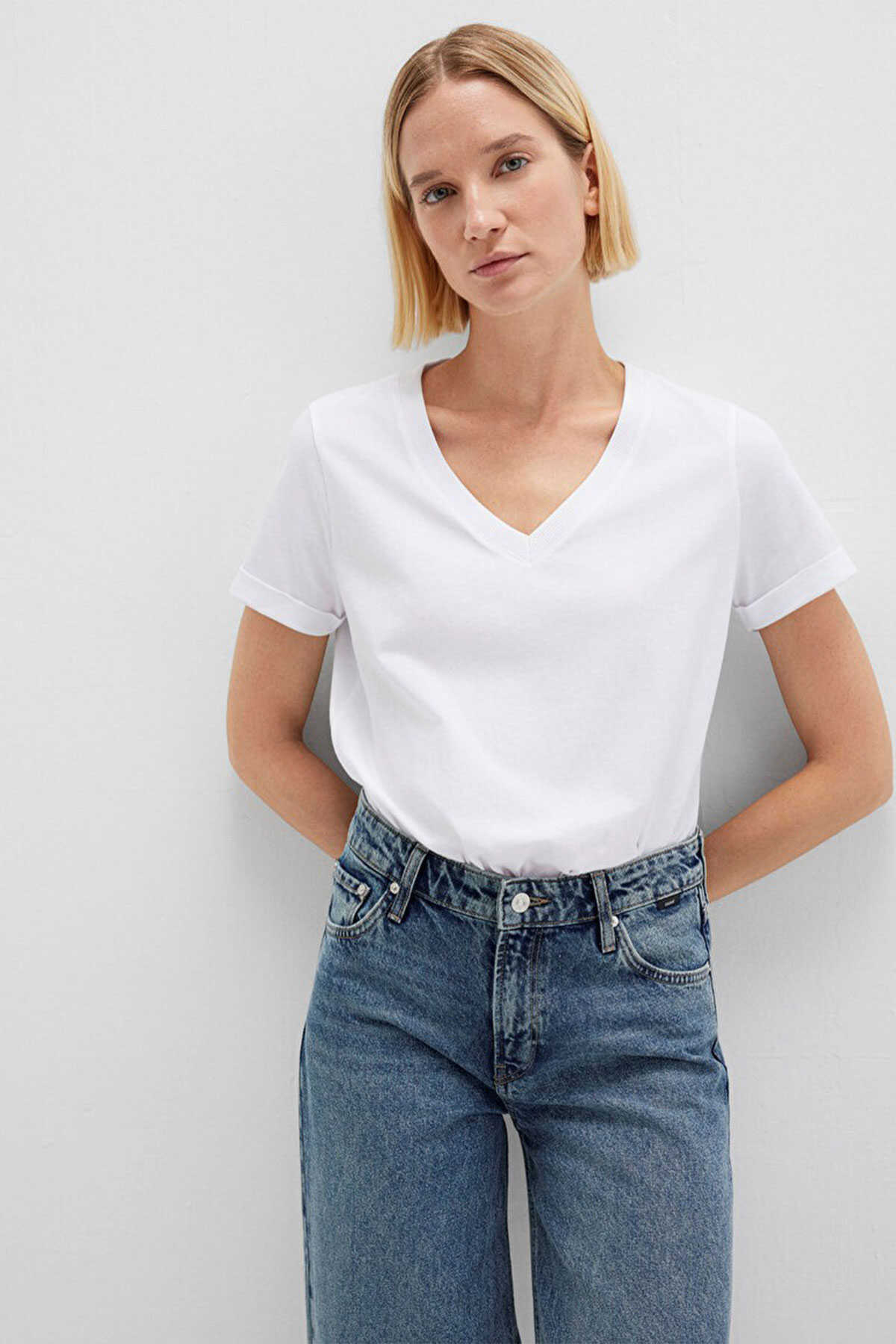 V Yaka Beyaz Basic Tişört yüzde yüz pamuklu orta ağırlıkta kumaştan üretilmiştir. - V yaka tasarımı ve kısa kolları ile klasik bir görünüm sunar. - Düz dokulu beyaz rengi ve loose fit rahat kesimi ile günlük kullanım için ideal olan bu tişört her gardırobun temel parçalarından biridir. - Regular Fit Normal Kesim - Ürün Kodu: 166248-620 - Kumaş Bilgileri - %100 Pamuk - Manken Ölçüleri - Jean: Bel: 26 Boy: 30 Üst: S - Boy: 177 cm Bel: 61 cm Göğüs: 82 cm Kalça: 89.5 cm - Menşei: Türkiye